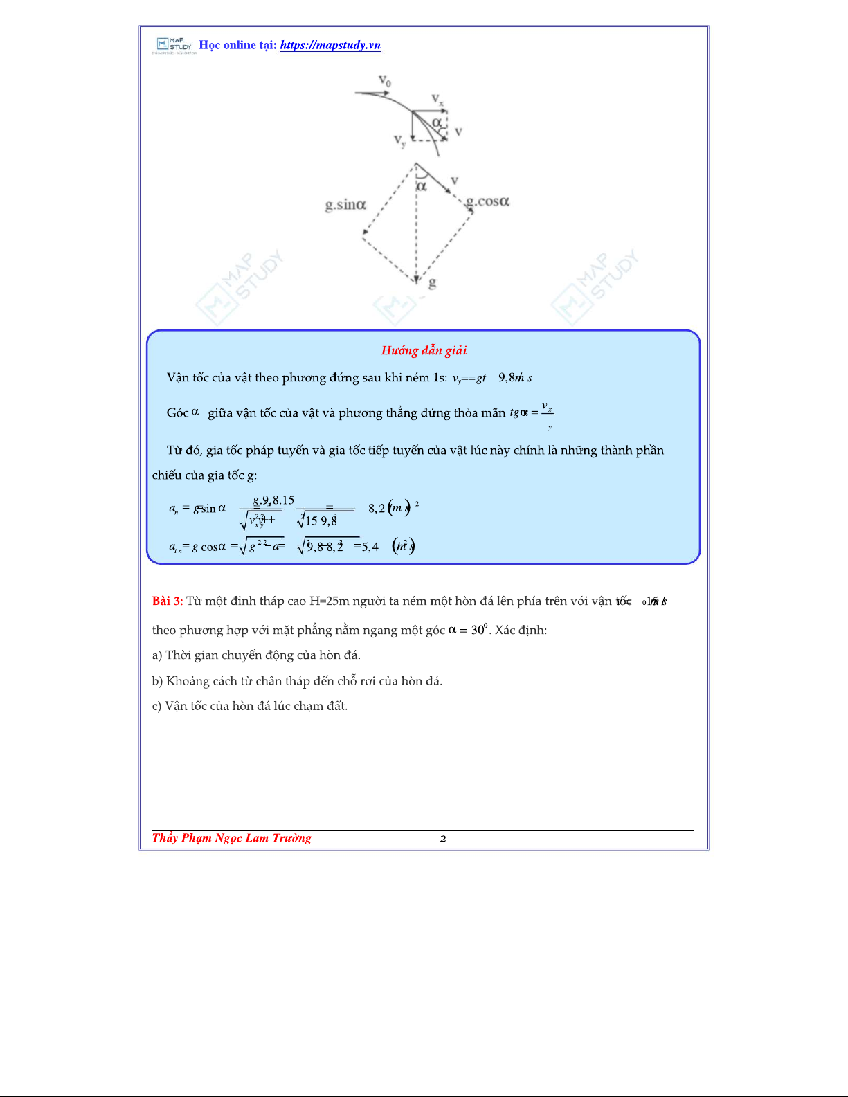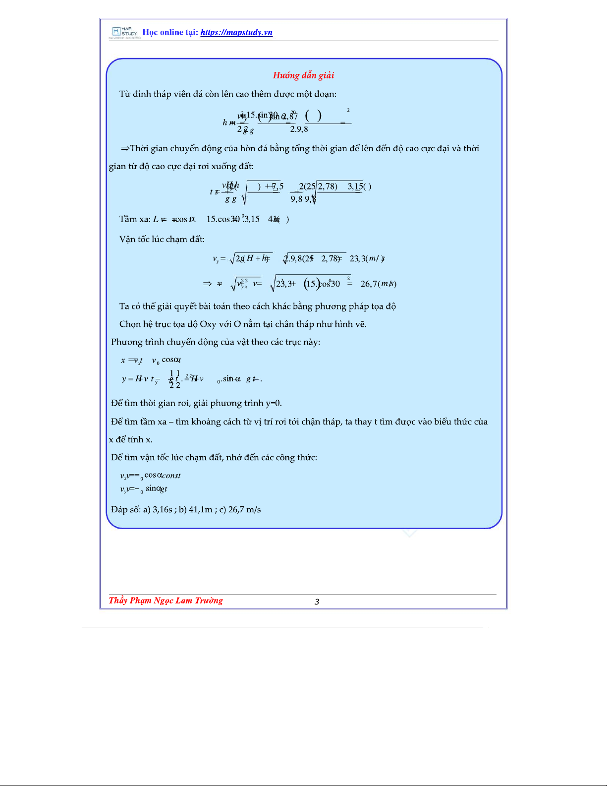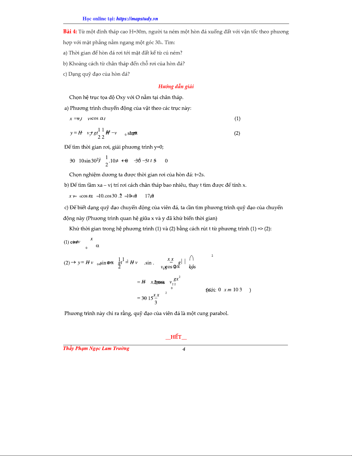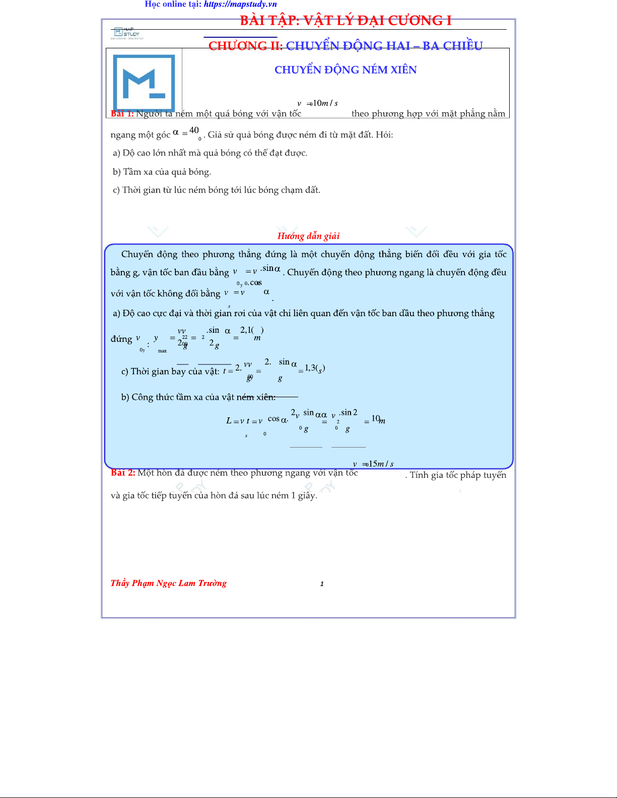 0203 - Bài Tập Vật Lý: Chuyển Động Ném Xiên (Lời Giải + Đáp Án)