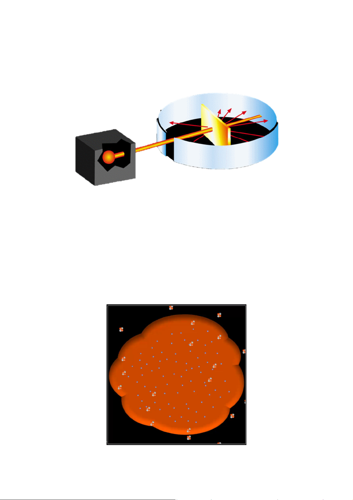 bắn phá một một lá vàng mỏng (~10-7 m) và quan sát chùm tia ló.