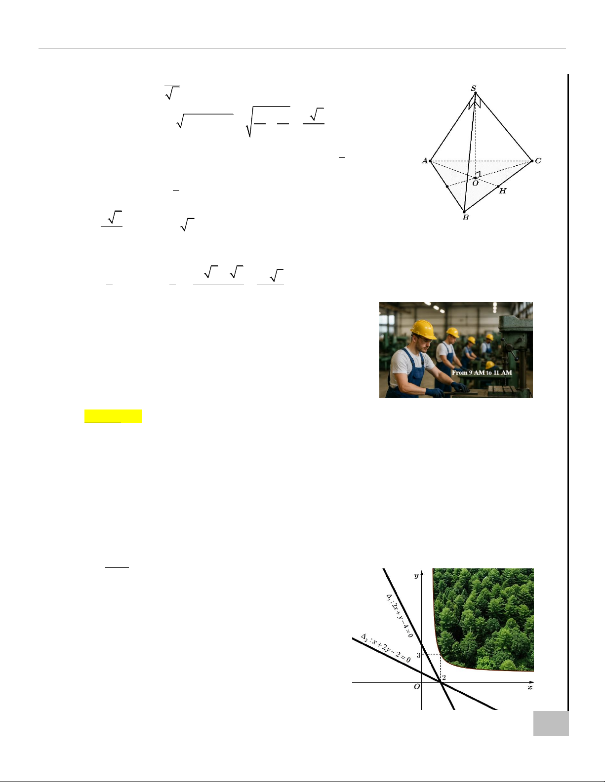 d (O, (P)) 2 9 = . 2 2 2 9 − 15 9 + 15 Do đó T = ; T = và 2 2 T + T = 48 . 1 2 2 2 1 2