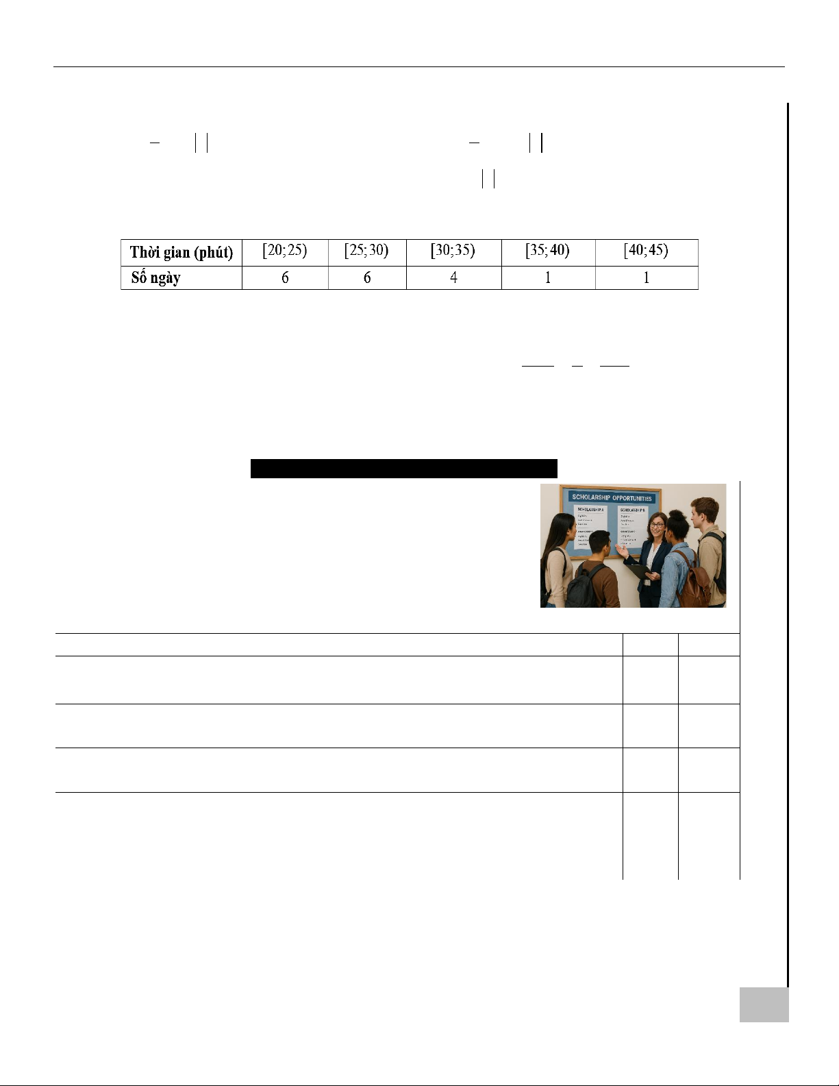 Câu 11. Bạn An rất thích nhảy hiện đại. Thời gian tập nhảy mỗi ngày của bạn An được thống kê lại ở bảng sau: