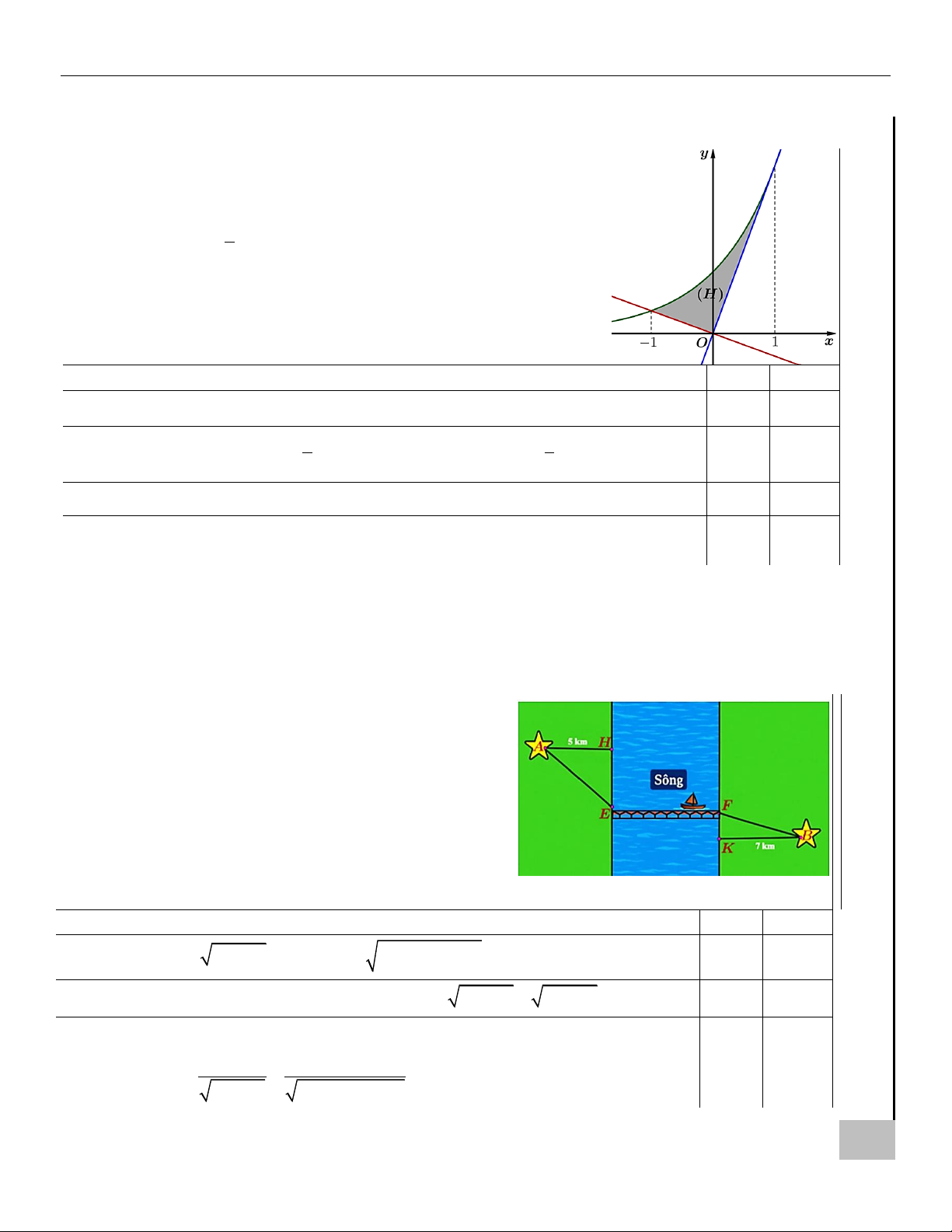 d) Khi quay hình (H) quanh trục hoành thì được khối tròn xoay có thể tích I PHÍ Ạ