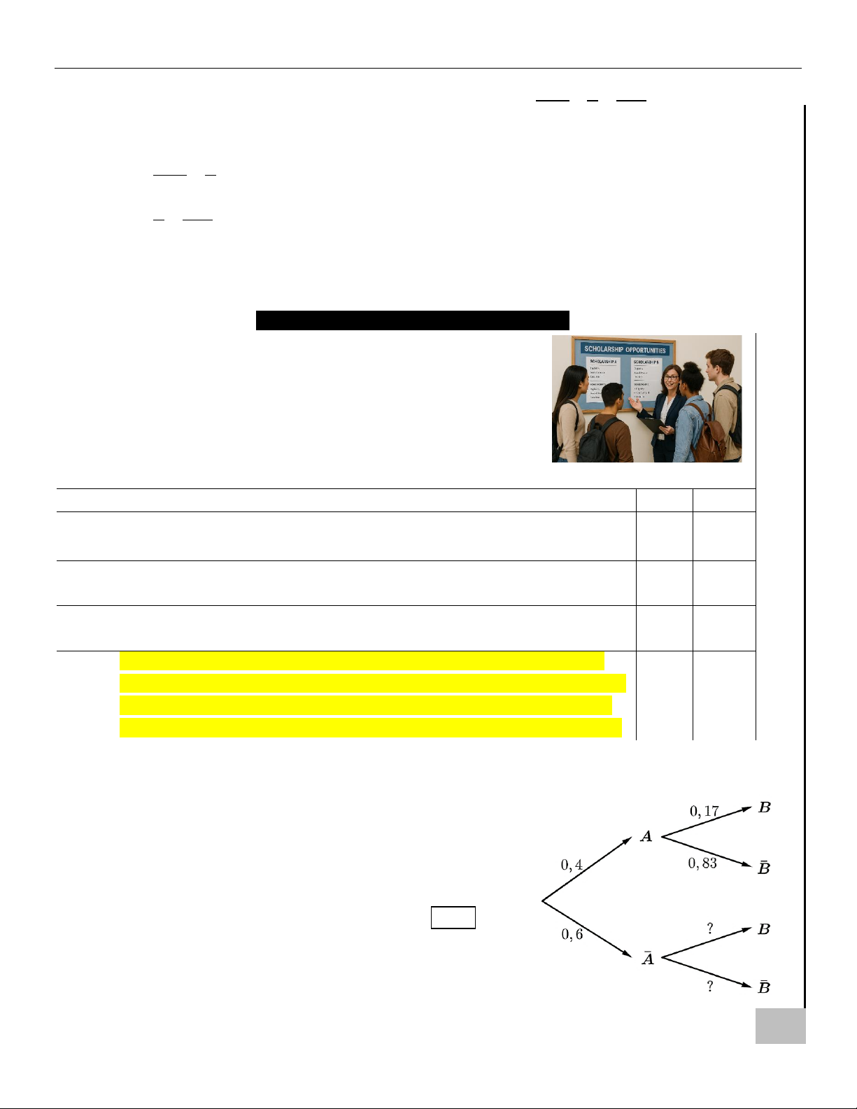 bổng B, xác suất để người này không quan tâm đến học bổng A bằng 0,66.