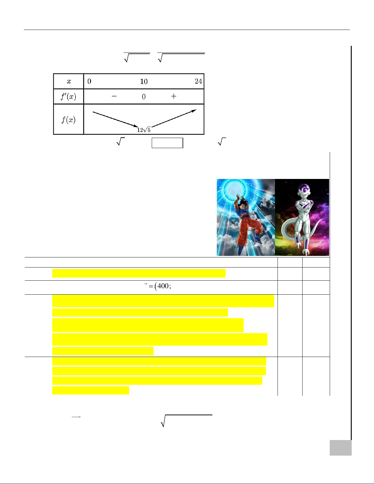 c) Nếu đặt f ( x) = AE + BF (km) thì f ( x) x x − 24 = + ,x (0; 24) . 2 2 x + 25 x − 48x + 625
