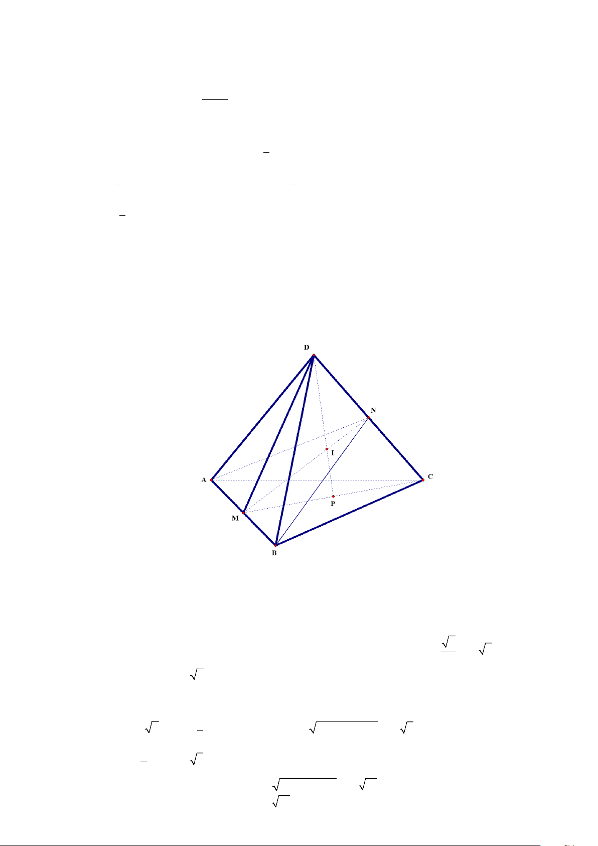 Câu 5: Cho hình tứ diện đều ABCD có cạnh bằng 12 . Gọi M,N lần lượt là trung điểm của cạnh AB và