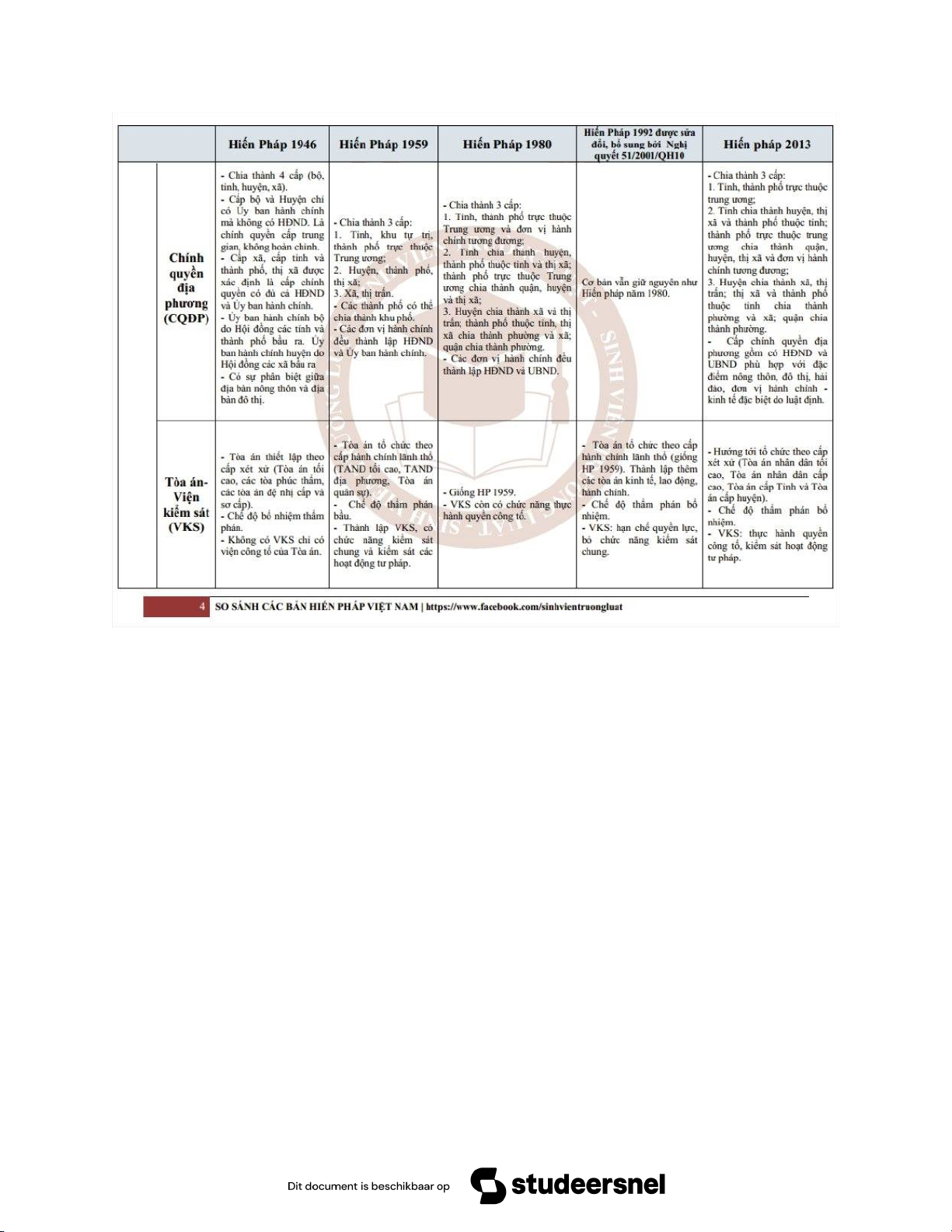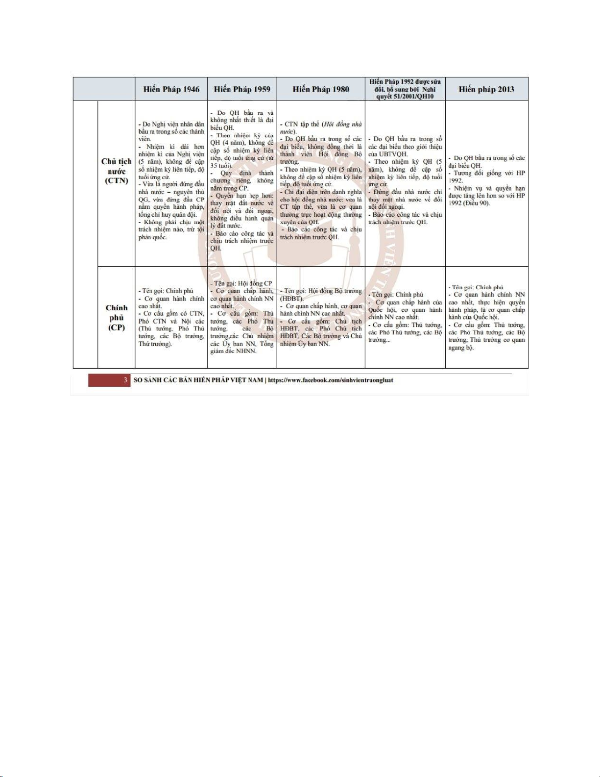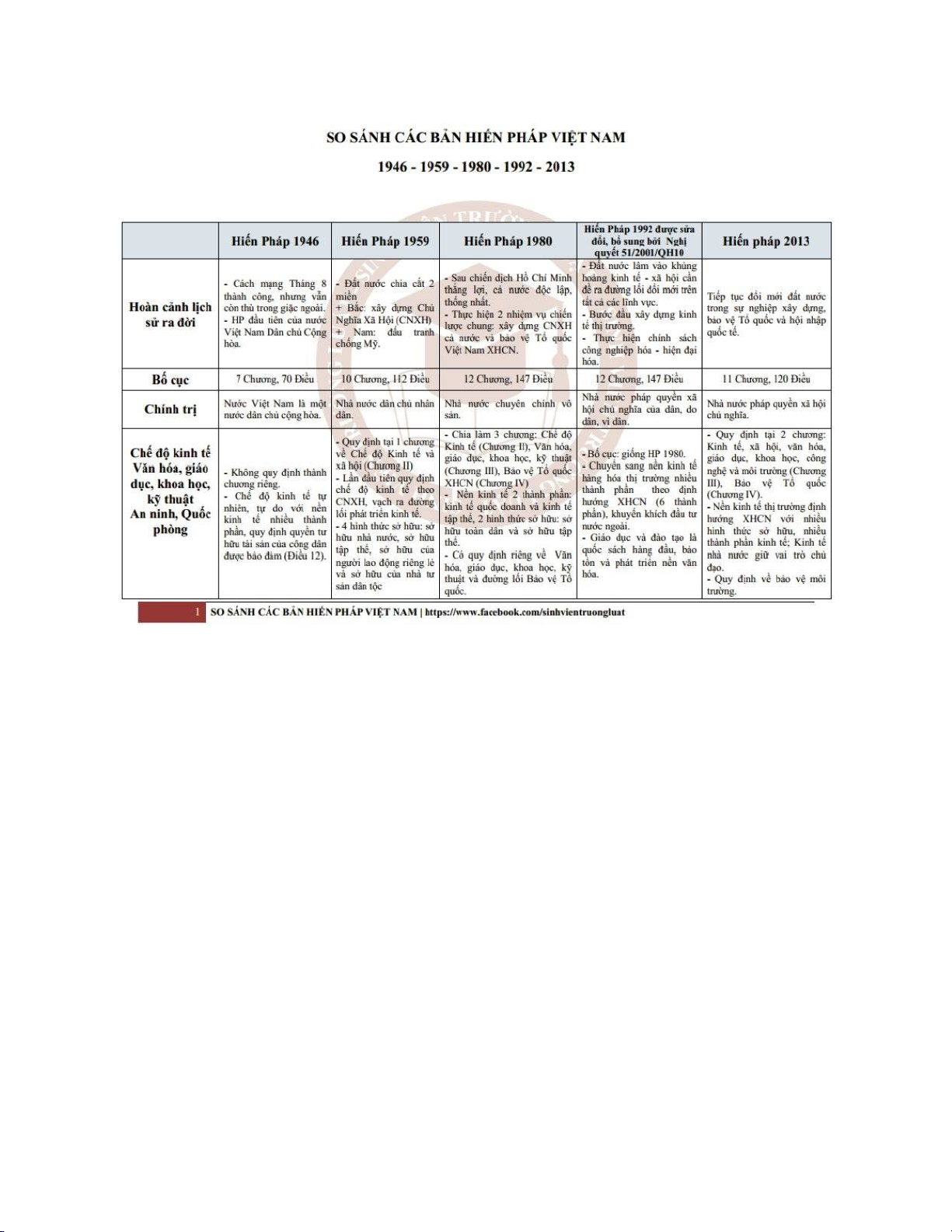 So sánh nội dung của các bản Hiến pháp