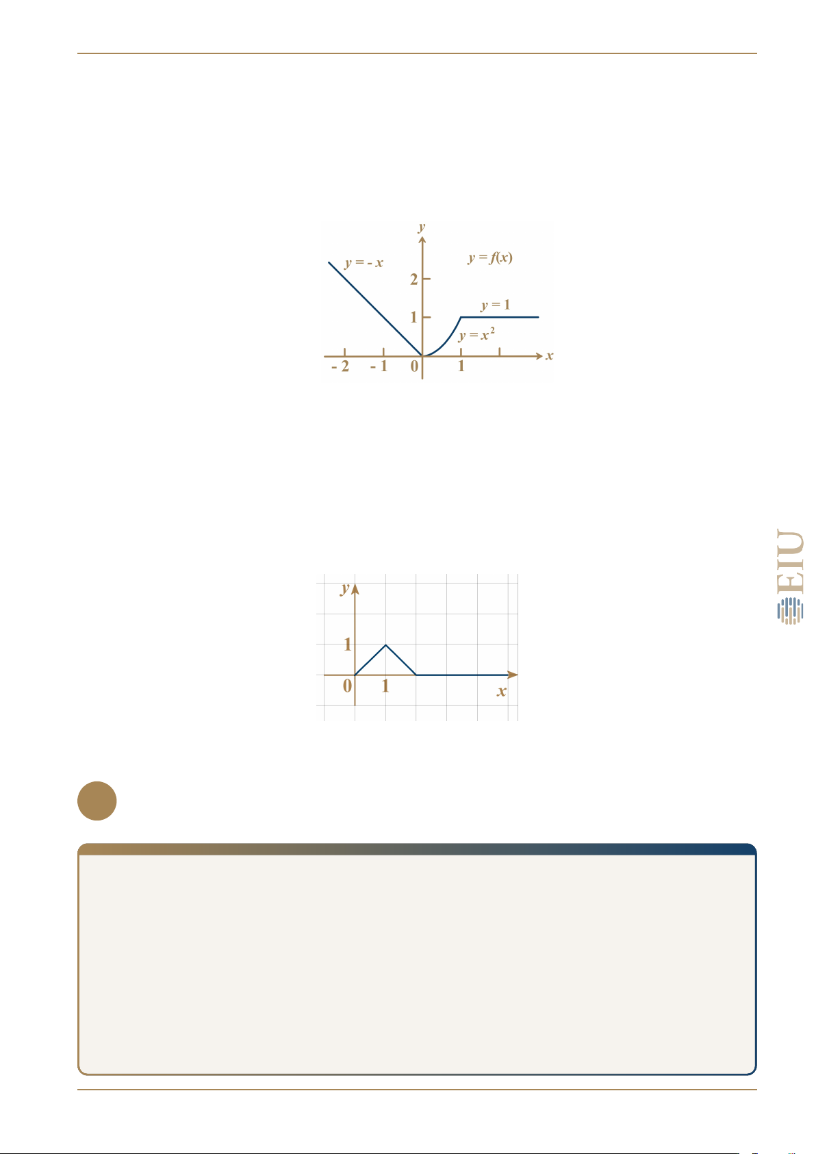Khi đó, với x < 0 thì y = −x, với 0 ≤ x ≤ 1 thì y = x2 và với x > 1 thì y = 1.