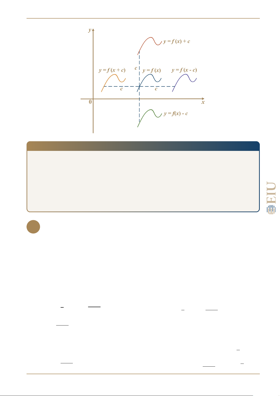 • Từ đồ thị hàm số y = f (x) suy ra đồ thị hàm số y = f (x) + c, ta tịnh tiến đồ thị hàm