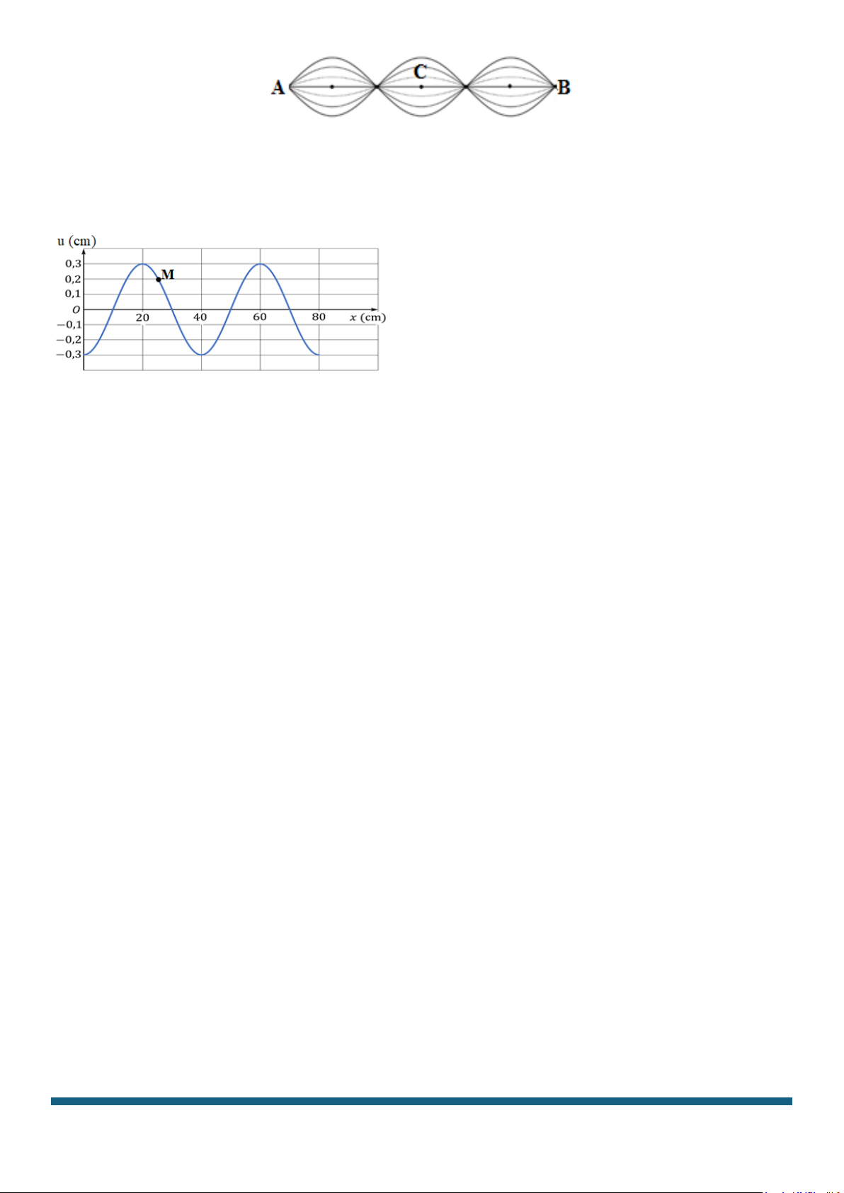 Câu 4: Một sóng ngang lan truyền trên dây. Tại một thời điểm