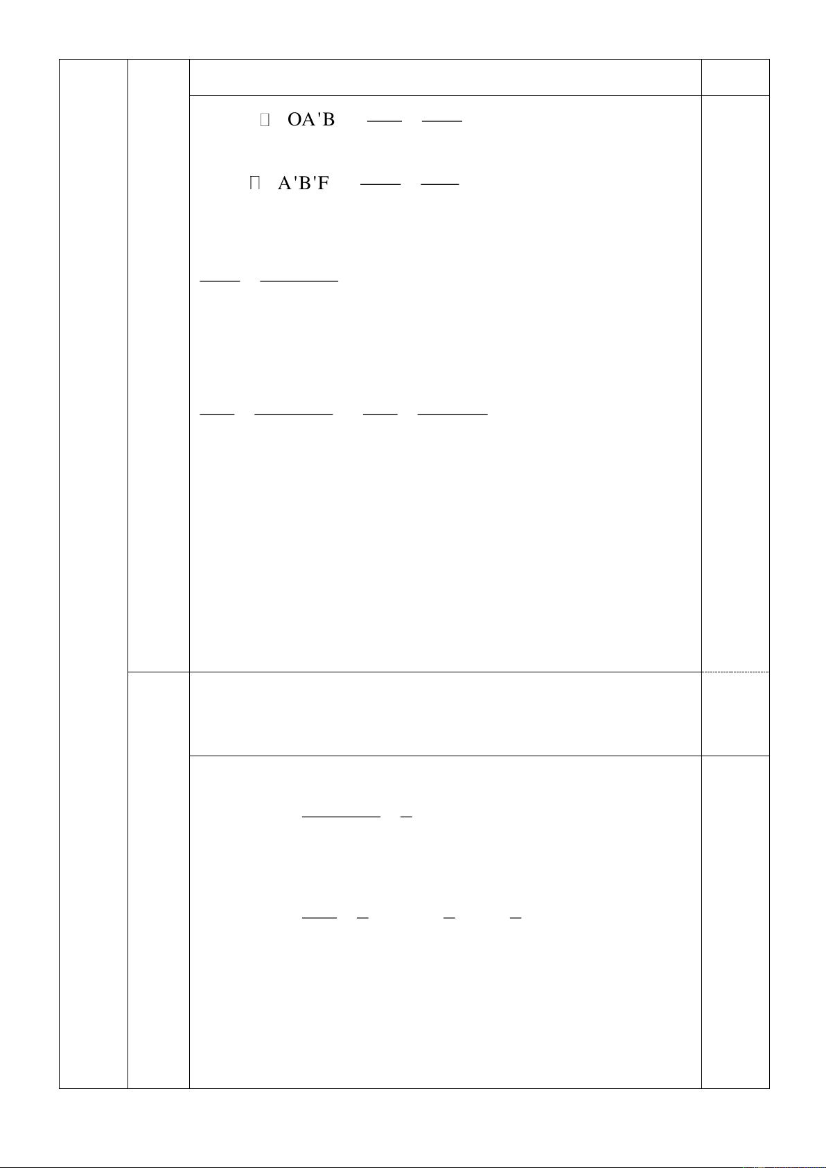 Mà OI = AB, A’F’ = OF’ + OA’ nên AB OF' = (3) A 'B' OF'+ OA ' Từ (1) và (3) ta có: 0,125 đ OA OF' 8 12 = = OA ' = 24(cm) b OA ' OF'+ OA ' OA ' 12 + OA ' (0,5
