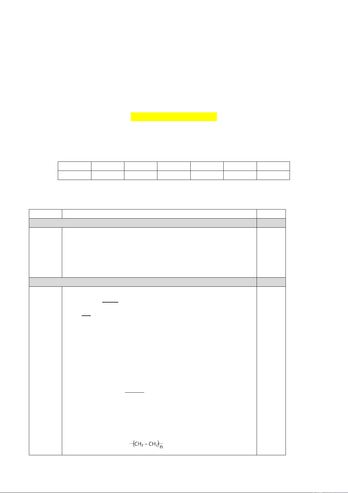 b. Lấy lượng khí ethylene ở trên mang đi trùng hợp, sau phản ứng thu được bao nhiêu gam polyethylene HƯỚNG DẪN CHẤM