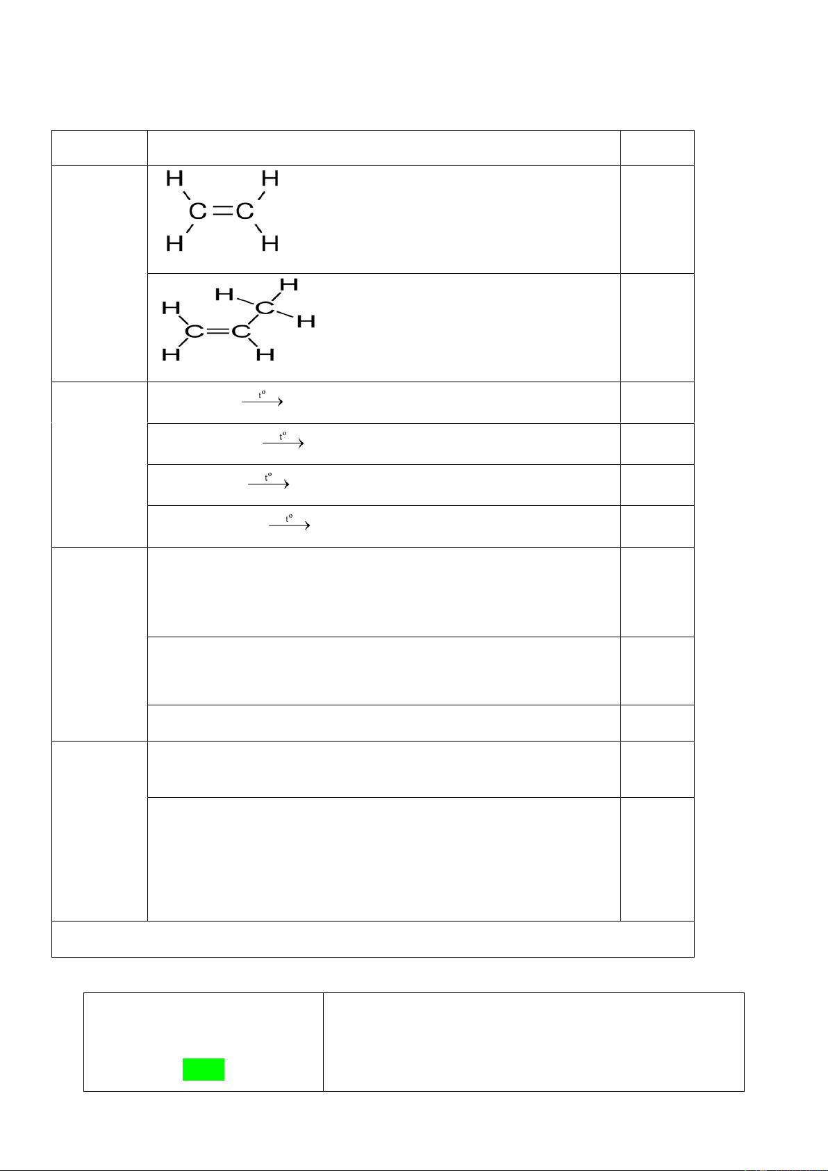 PHẦN II. TỰ LUẬN (3,5 điểm) Câu Hướng dẫn Điểm Câu 1 1,5 a o C t ⎯⎯→ 3H8 + 5O2 3CO2 + 4H2O 0,5 b o C t ⎯⎯→ 2H4 + 3O2 2CO2 + 2H2O 0,5 c