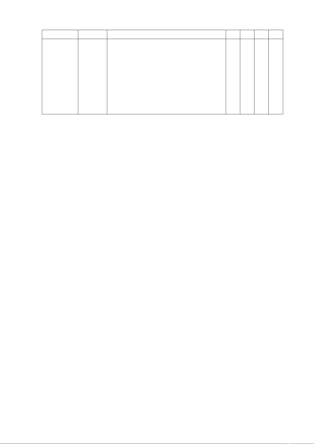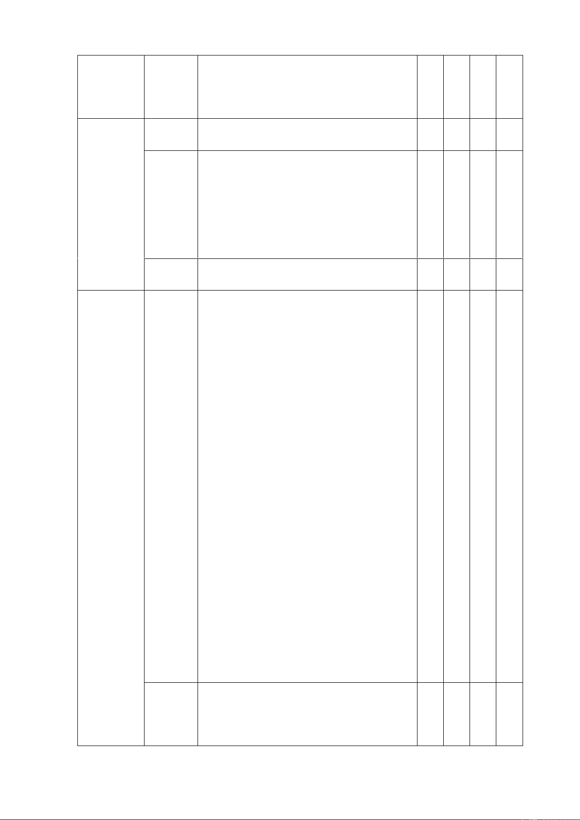 Mức độ đánh giá T Chương dung/ đơn vị kiến TNKQ Tự luận thức Nhiều lựa chọn “Đúng - Sai” Trả lời ngắn Biết Hiểu Vận Biết Hiểu Vận Biết Hiểu Vận Biết Hiểu dụng dụng dụng 1 Trao đổi 1,0 1,0 1,0 1,0 0,5 0,5 1,0 0,5 0,5 1,0 0,75 chất và chuyển hóa năng lượng ở sinh vật ( 27 tiêt)