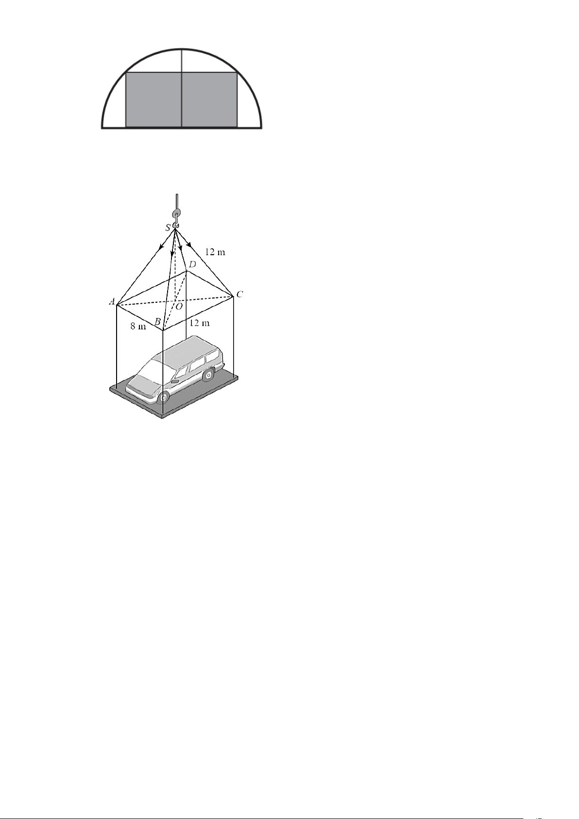 Câu 5. Ngân có một tấm giấy màu có dạng nửa hình tròn bán kính 8 cm. Ngân cần cắt từ tấm giấy màu