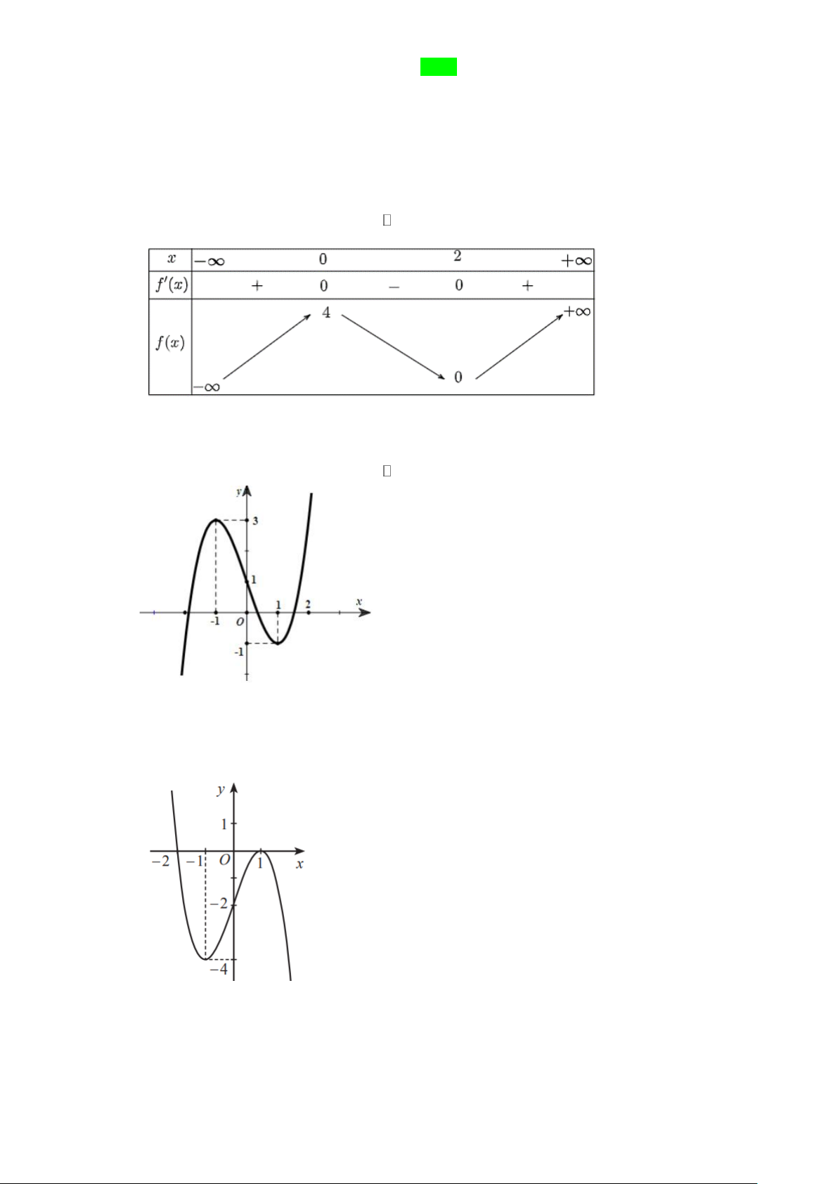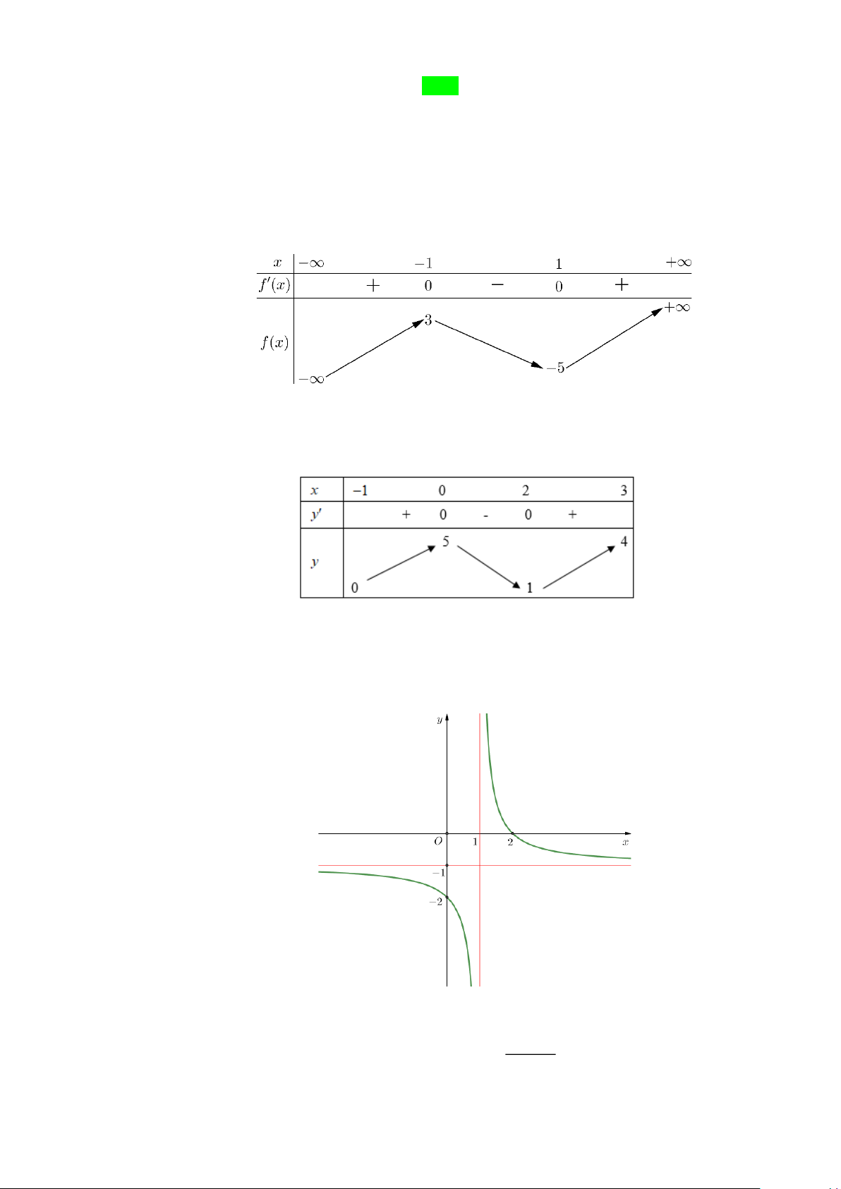Câu 1. Cho hàm số y = f (x) có bảng biến thiên như sau: