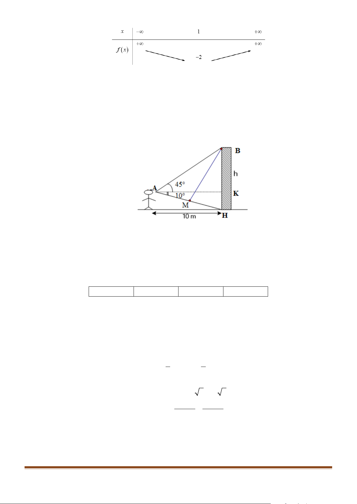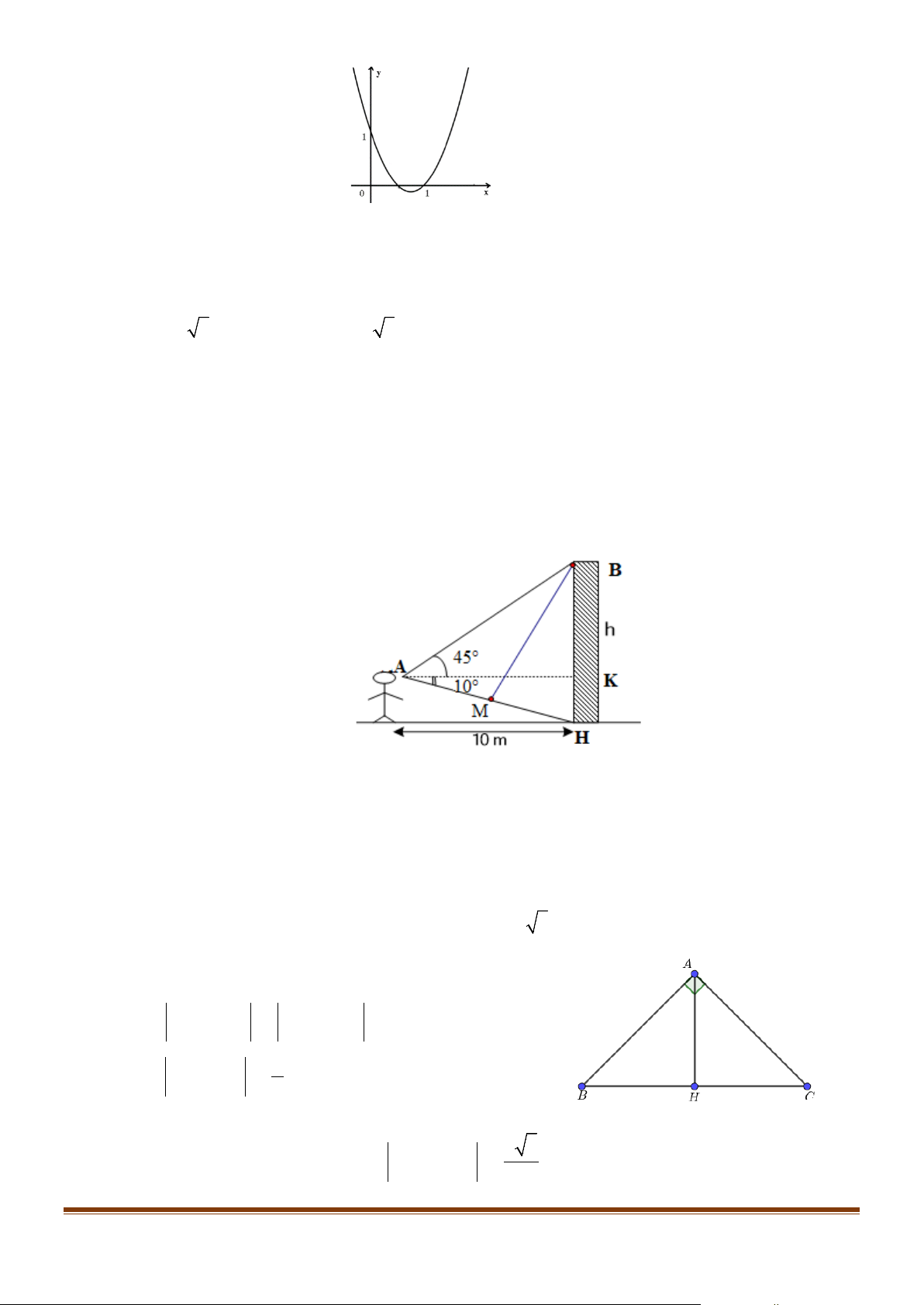 Câu 1: Một người quan sát đứng cách một cái tháp 10m, nhìn thẳng cái tháp dưới một góc 0 55 và được
