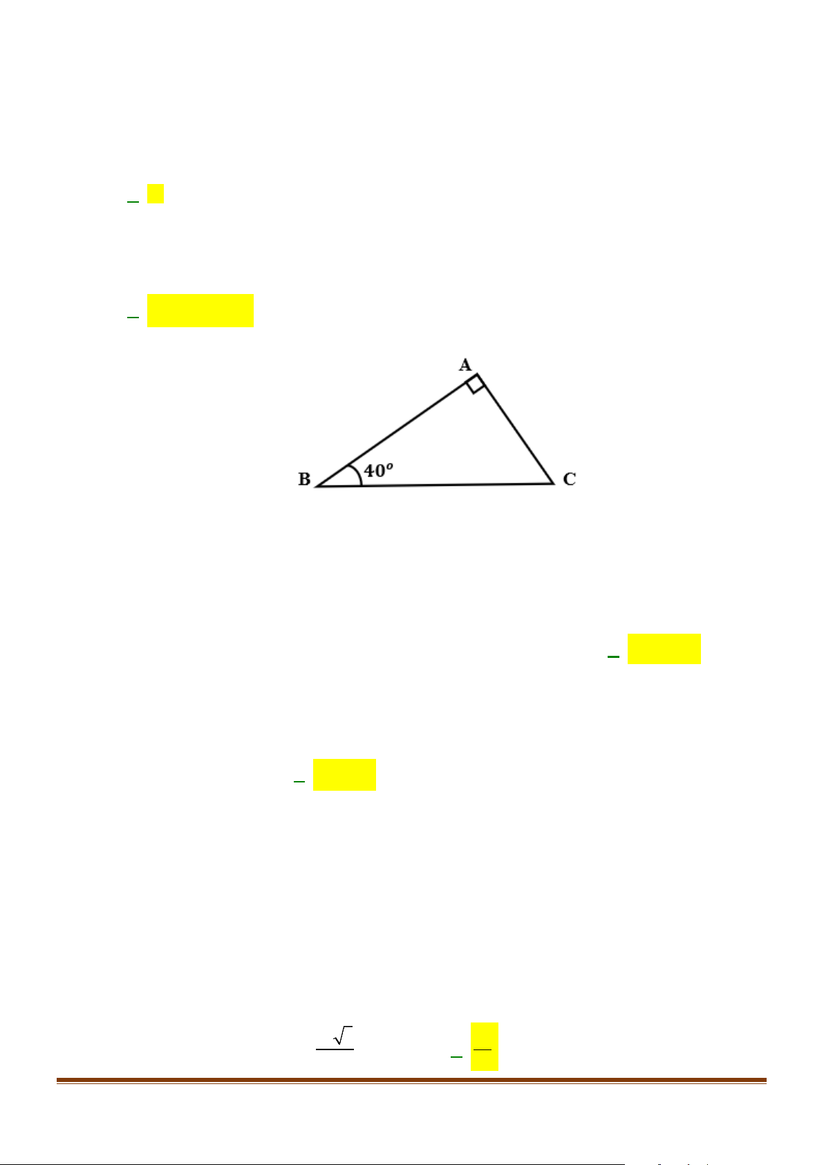 Câu 2: Cho tam giác ABC vuông tại A có 0