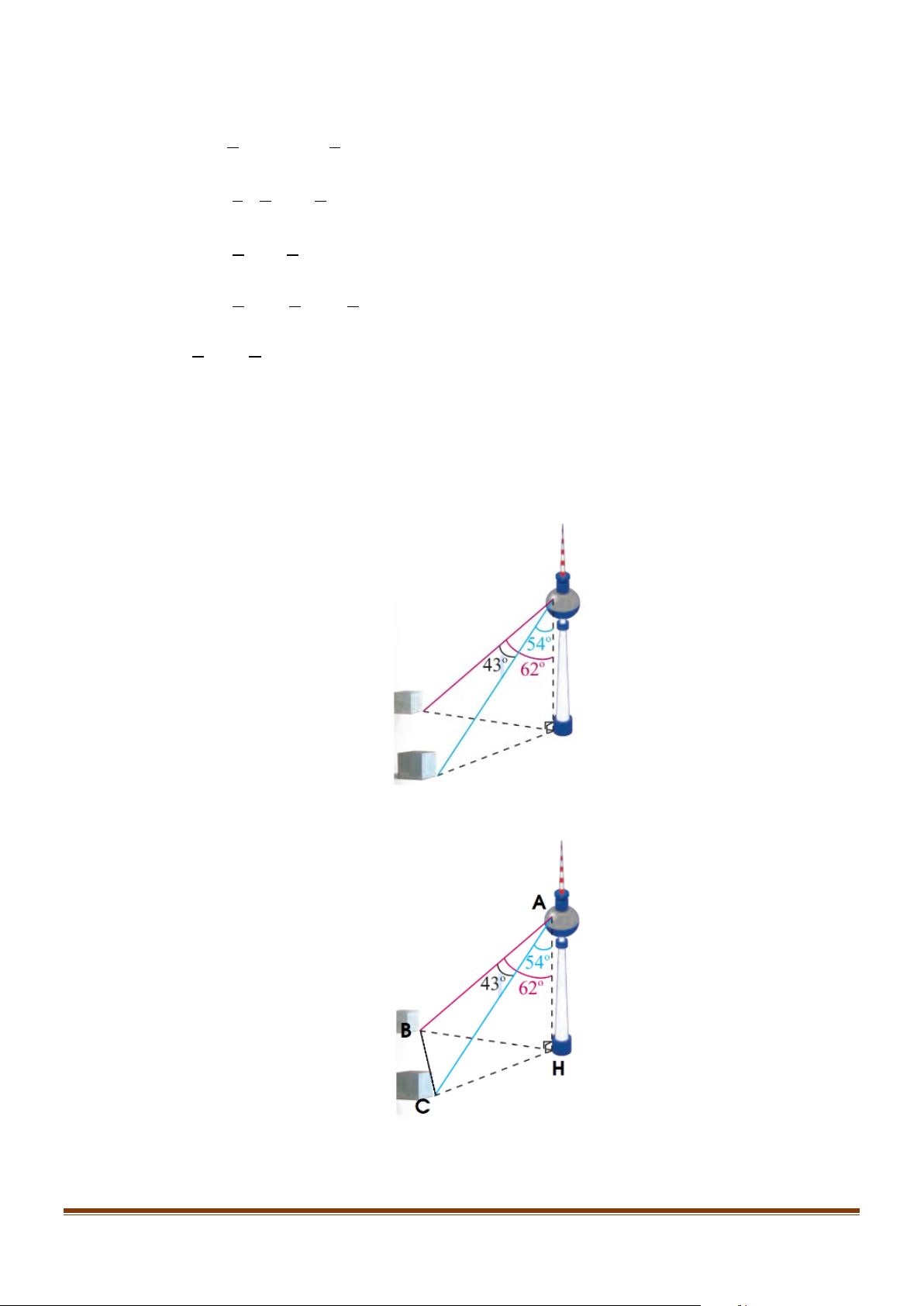 trên mặt đất là 62°và đến điểm mốc khác là 54° (hình tham khảo bên dưới). Tính khoảng cách
