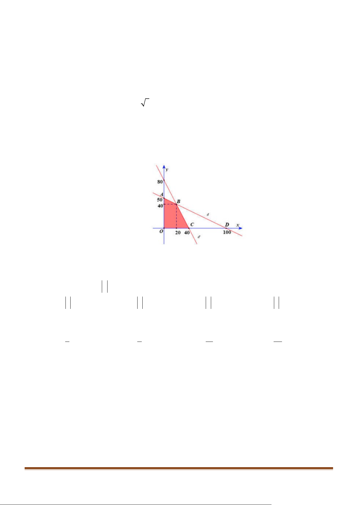 Xét các điểm A0;50; B20;40;C40;0;O0;0