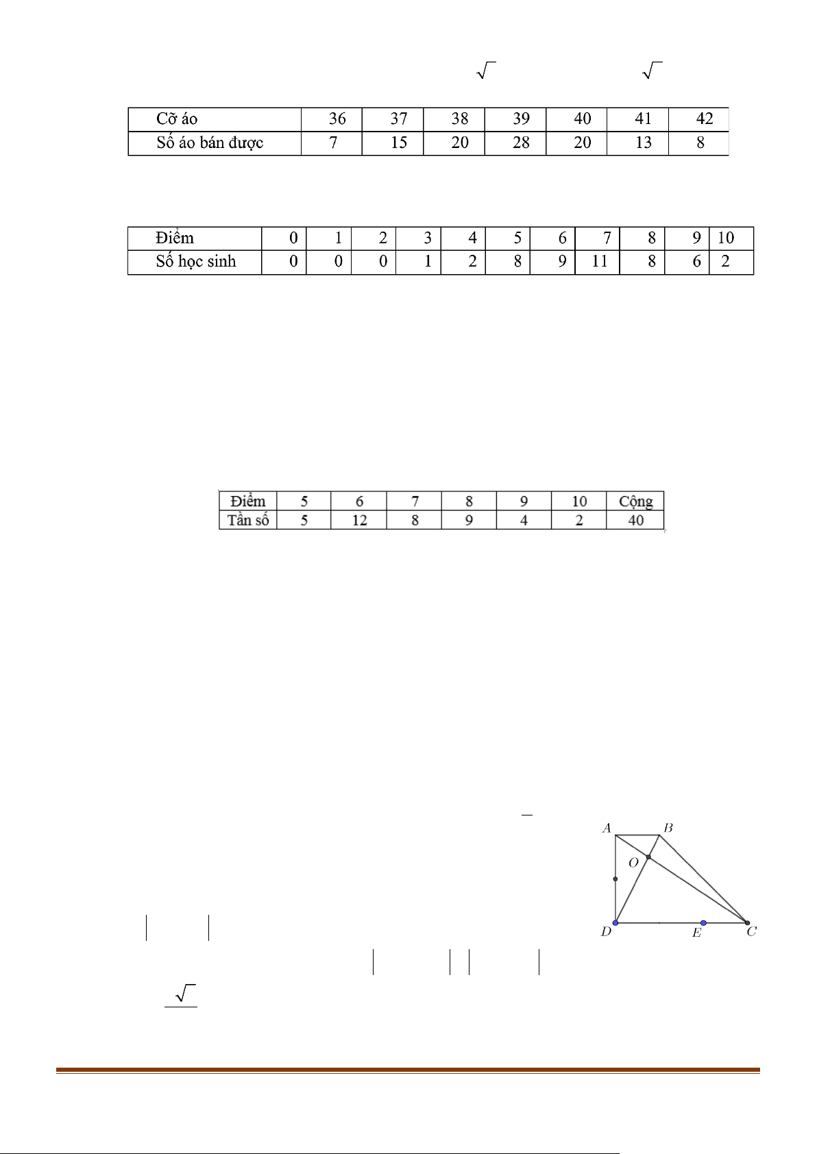 Câu 10: Bảng số liệu dưới đây cho biết số áo sơ mi nam bán được trong một tháng của một cửa hàng.