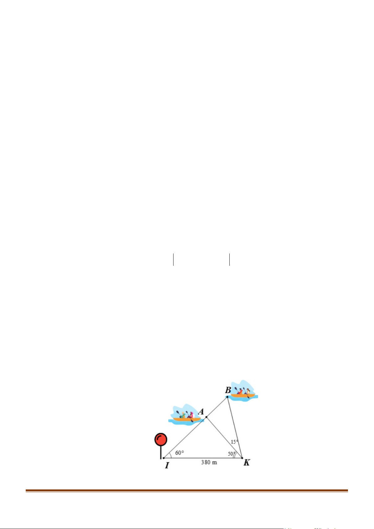 IK lần lượt là 50° và 65°. Điểm I là đích đến của cuộc đua. Lúc ghe A , ghe B và đích I