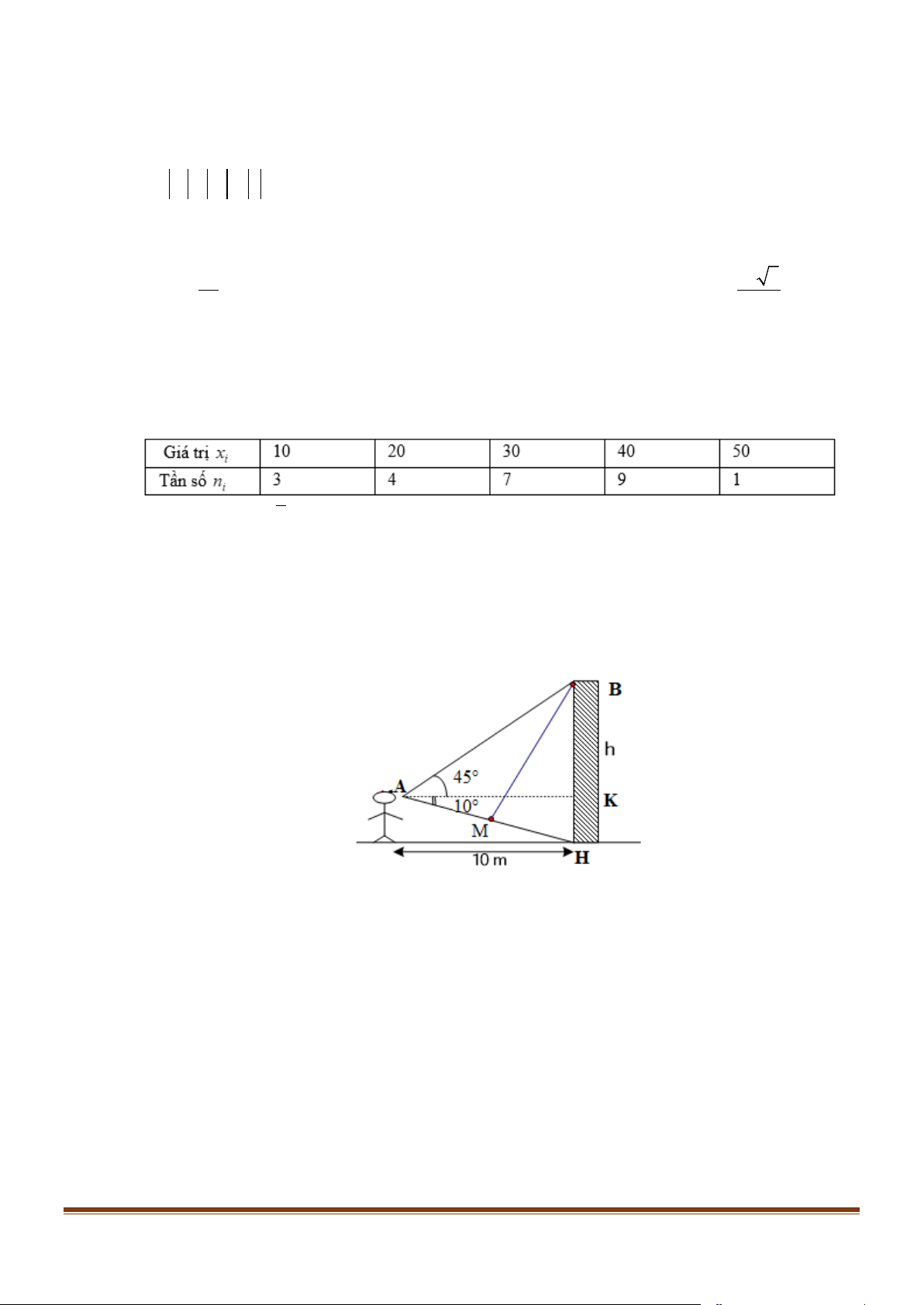 Câu 1: Mẫu số liệu khi cho bảng tần số dưới đây: