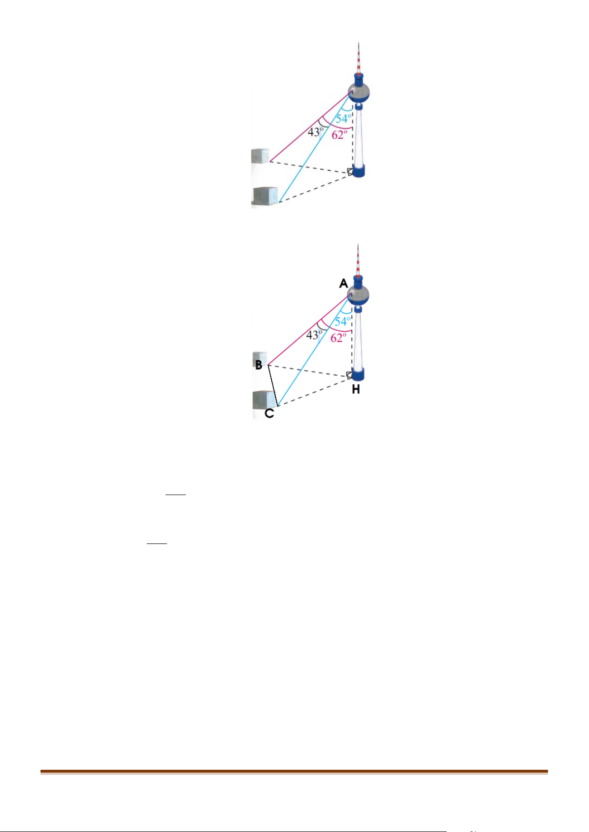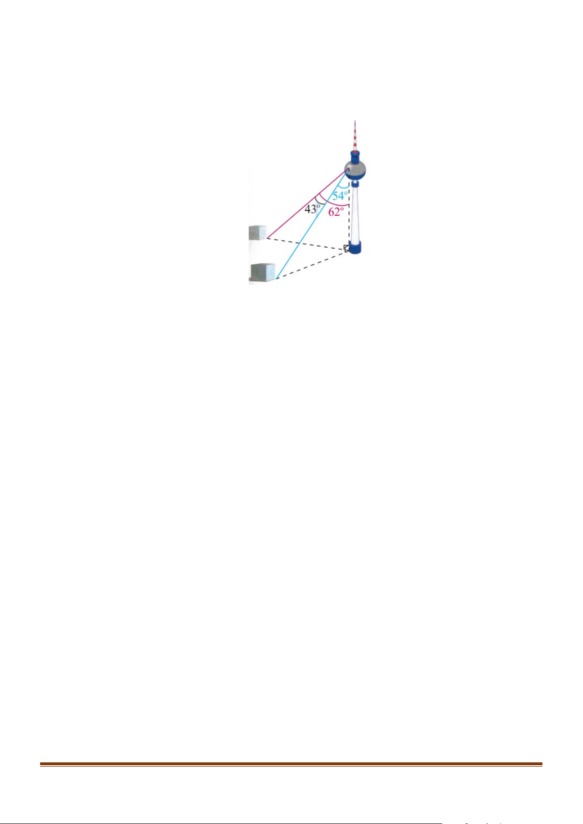 trên mặt đất là 62°và đến điểm mốc khác là 54° (hình tham khảo bên dưới). Tính khoảng cách