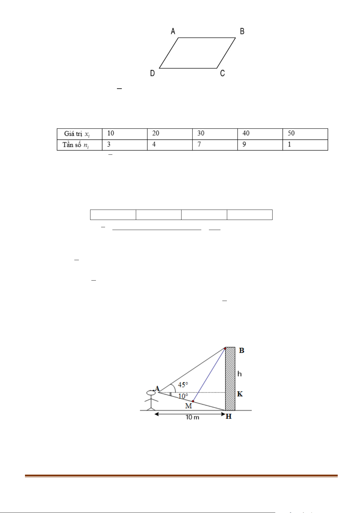Câu 7: Điểm kiểm tra học kỳ I môn Toán của 8 học sinh tổ I lớp 10A được cho như sau 8 6 7 8 9 10 9 7