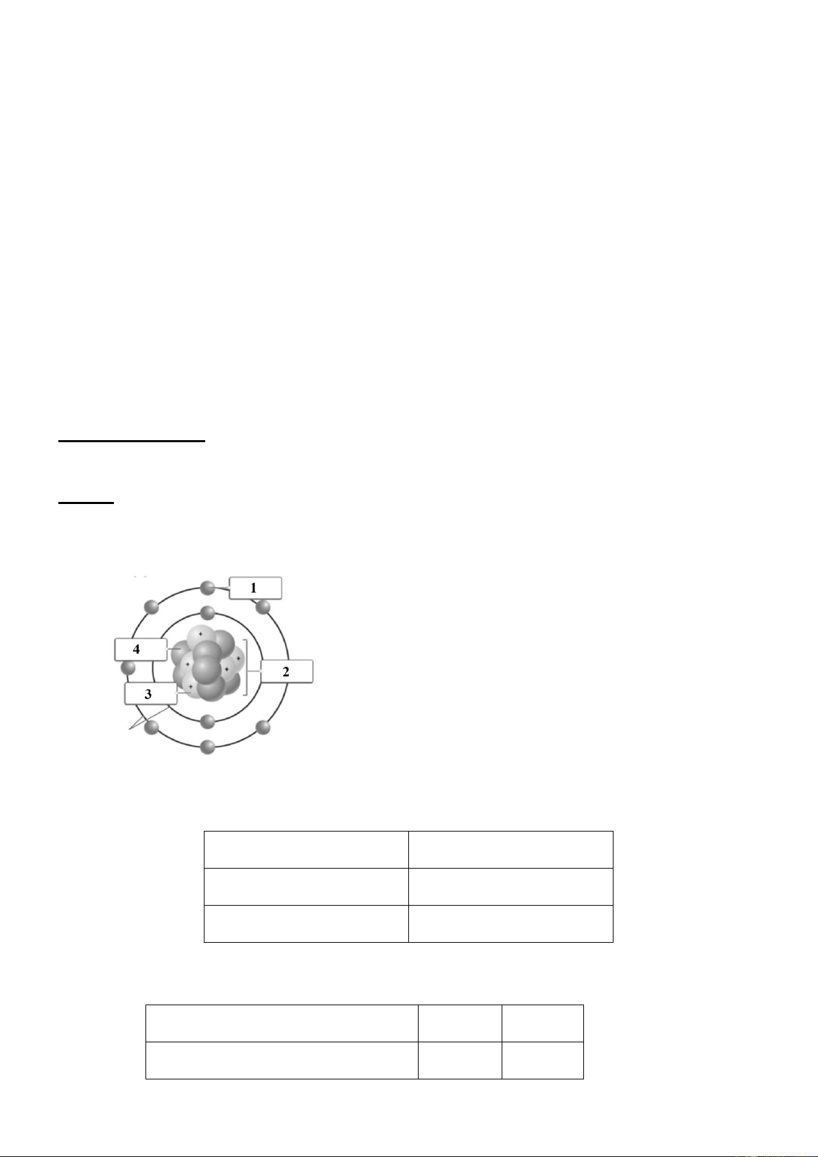 1.1) Dựa vào cấu tạo nguyên tử, em hãy chú thích vào sơ đồ nguyên tử ở hình bên. (0,5 điểm)