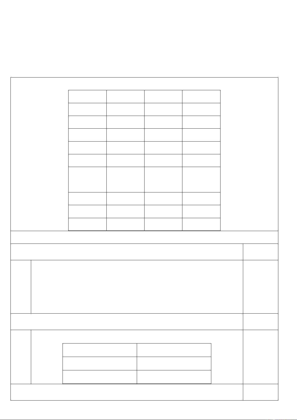 Hãy chọn đáp án đúng nhất điền vào bảng trả lời trắc nghiệm trong phần bài làm