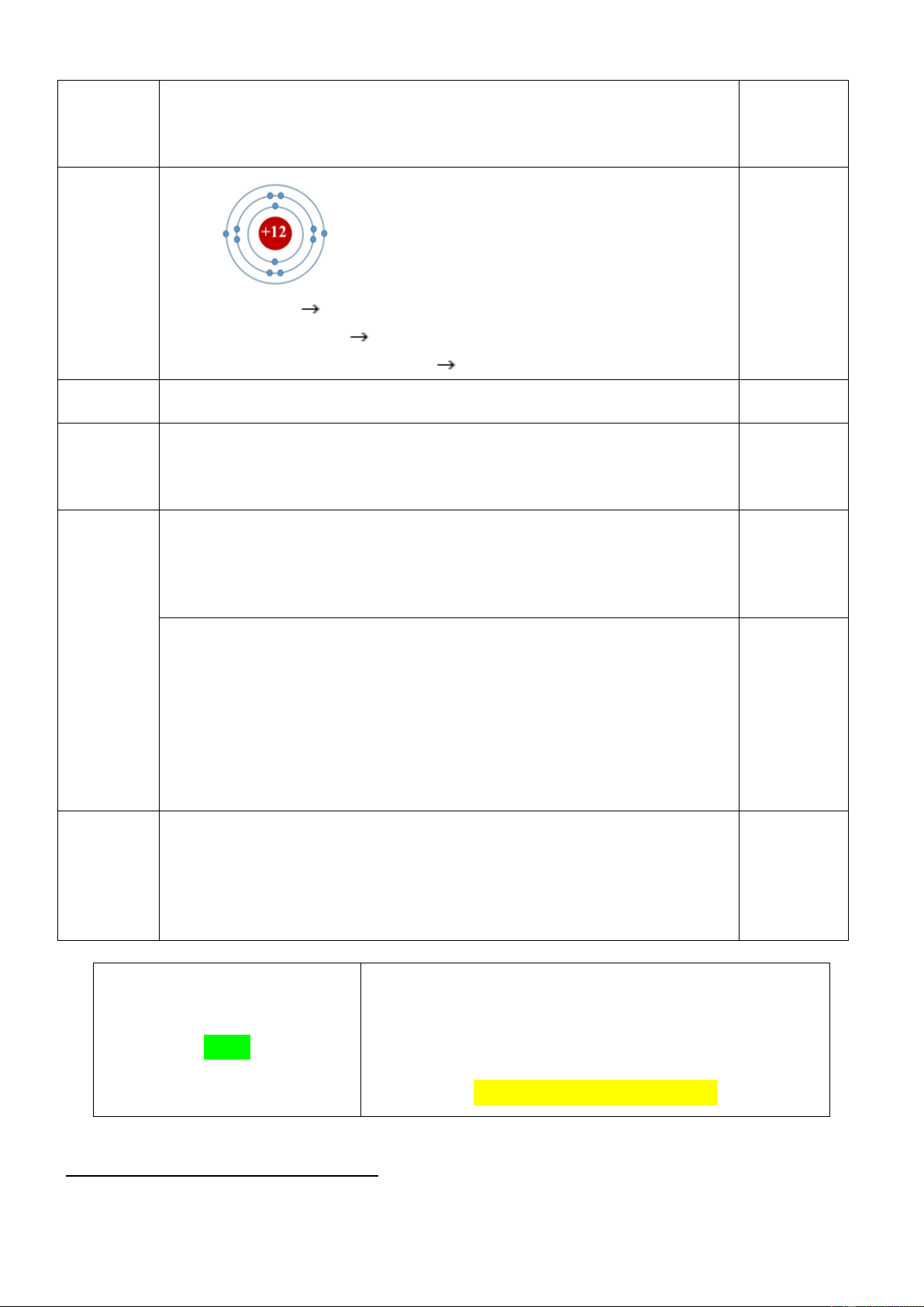 (0,5 điểm) electron, được xếp theo chiều điện tích hạt nhân tăng dần khi đi từ trái sang phải. Câu 2. (1,0 điểm) 0,25 T có Z = 12 T ở ô số 12. 0,25 0,25 T có 3 lớp electron T thuộc chu kì 3. 0,25