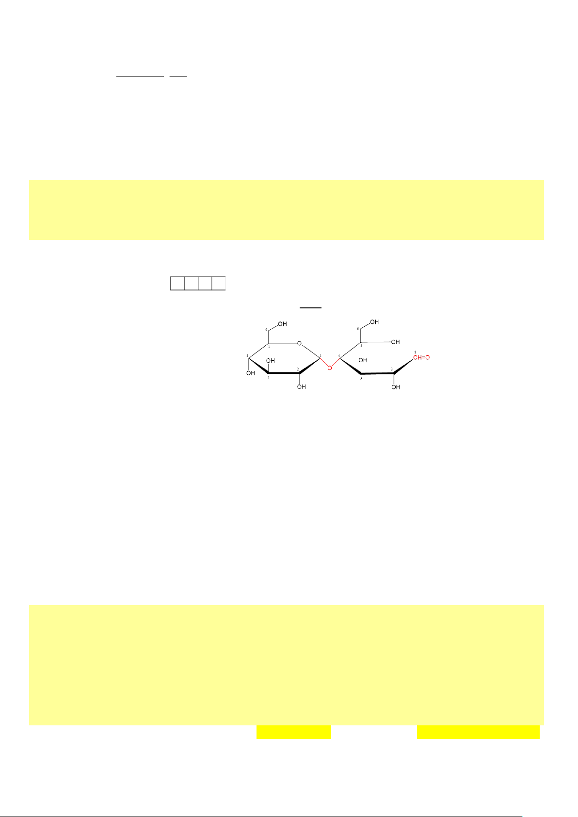 Câu 3: (hiểu) Maltose có công thức phân tử C12H22O11, cấu tạo từ hai đơn vị glucose qua liên kết α-1,4-