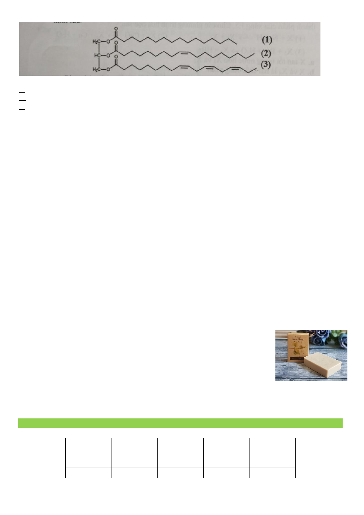 Câu 1: Cho 1 mol triglyceride X tác dụng với dung dịch NaOH dư, thu được 1 mol glycerol, 1 mol