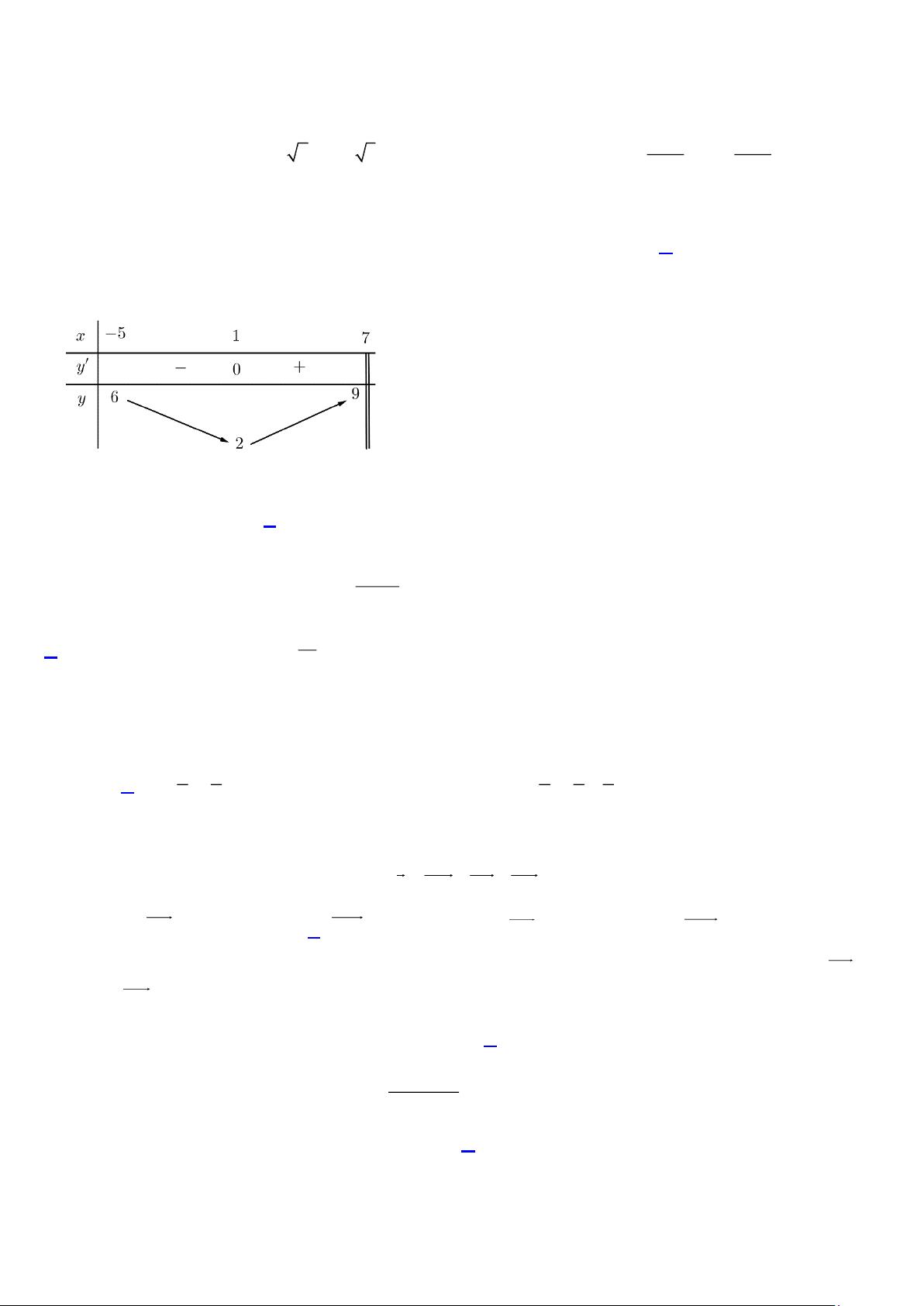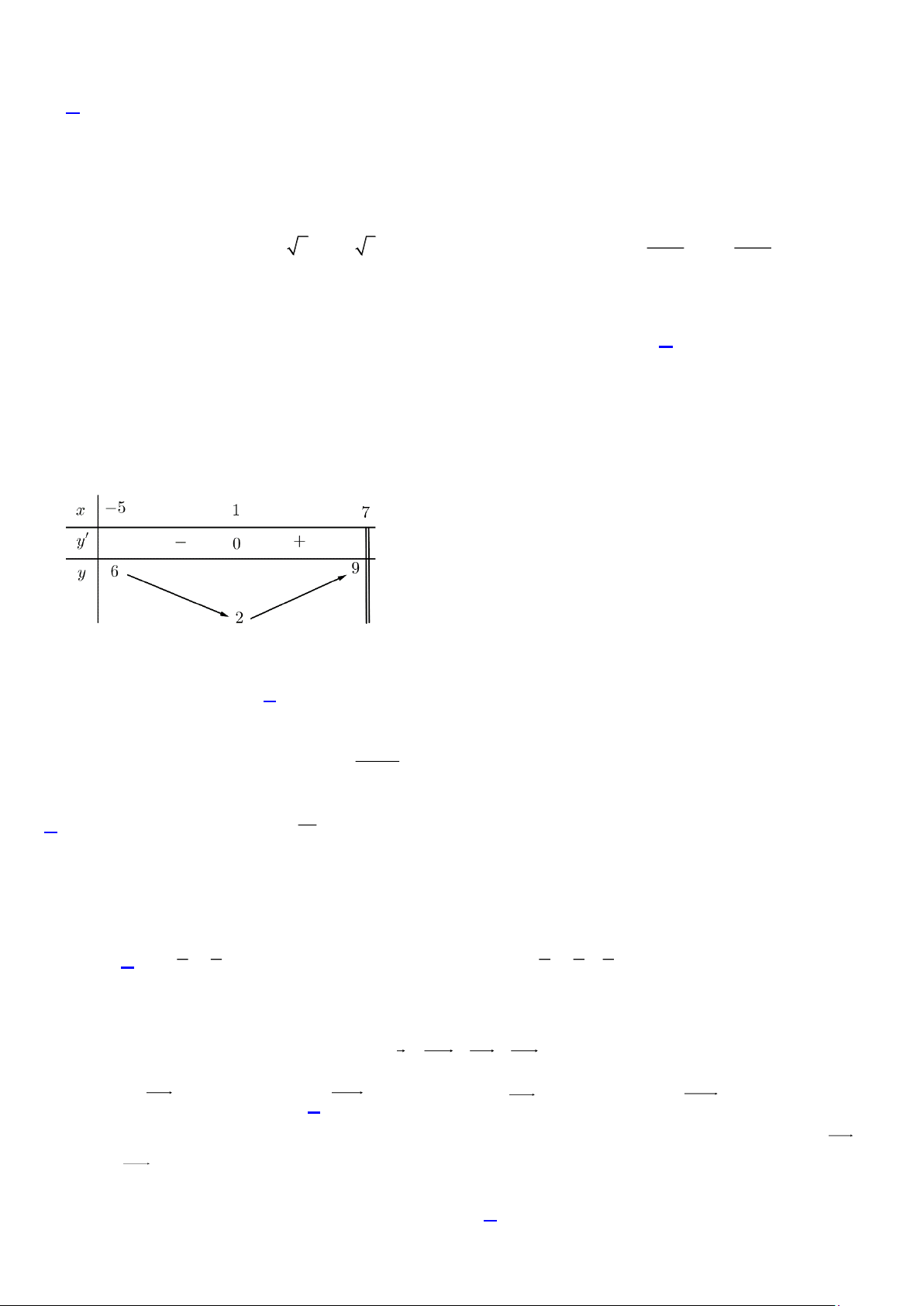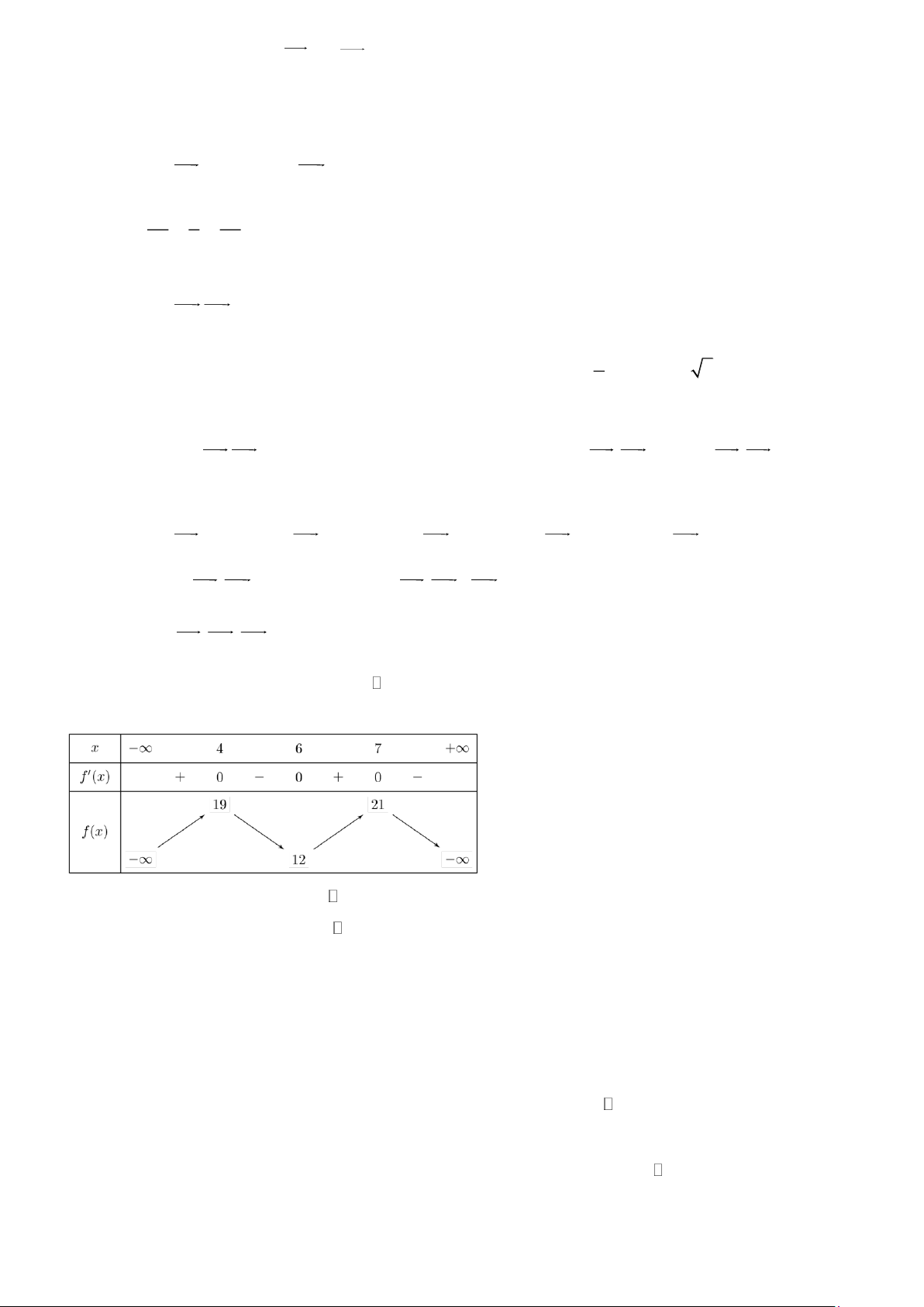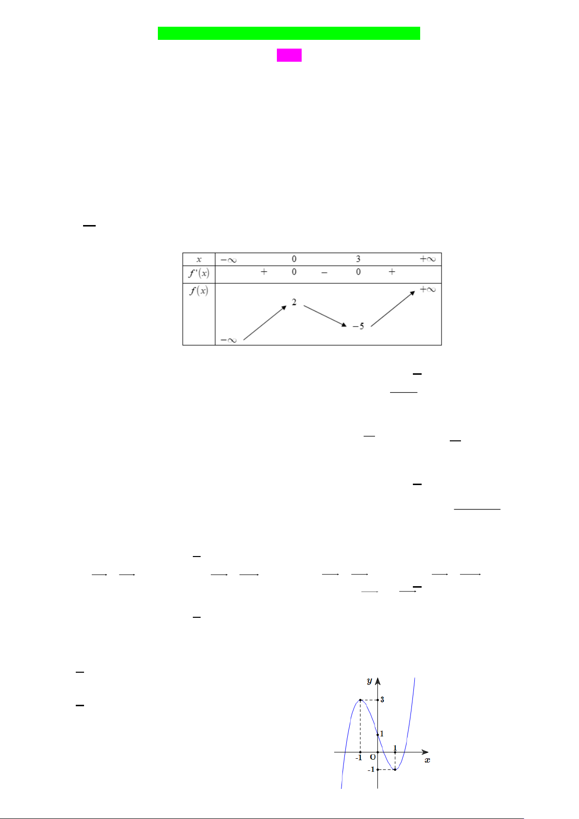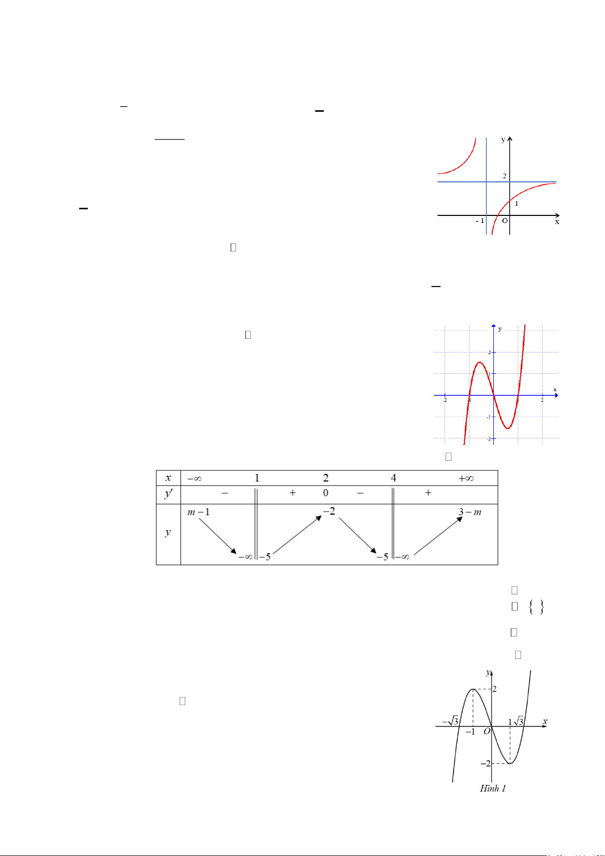 Câu 2. Cho hàm số y = f (x) có bảng biến thiên như hình dưới đây, trong đó m .