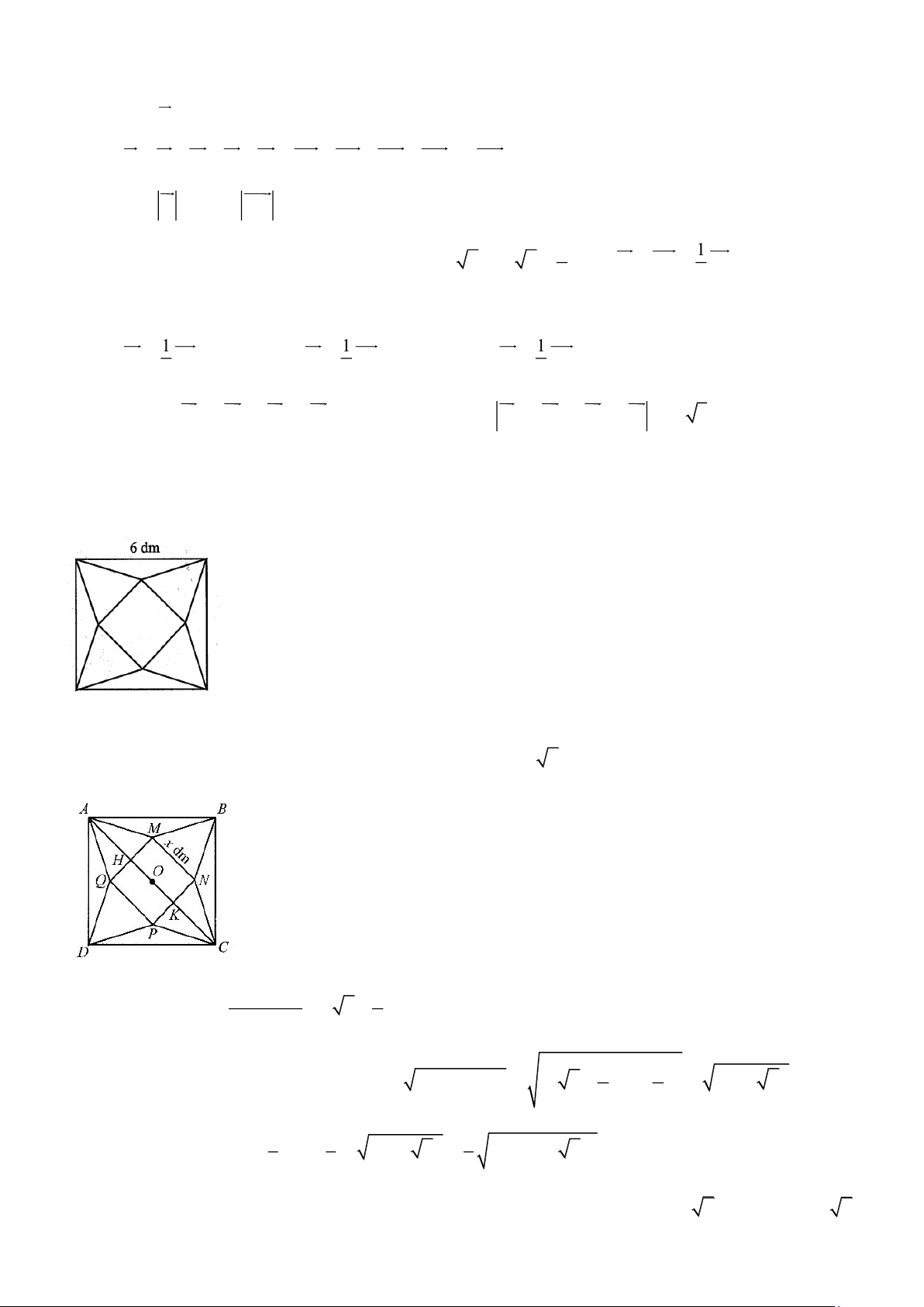 Câu 6.Từ một tấm bìa mỏng hình vuông cạnh 6 dm , bạn Hoa cắt bỏ bốn tam giác cân bằng nhau có cạnh đáy là