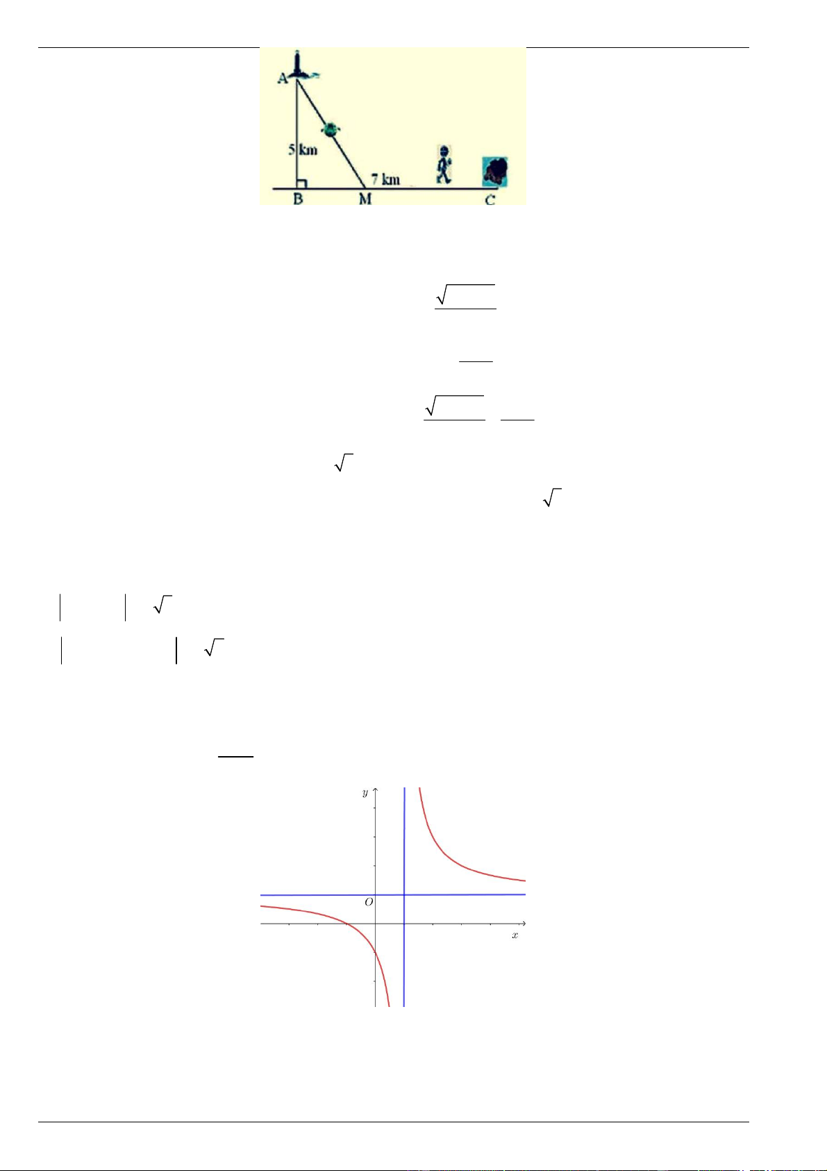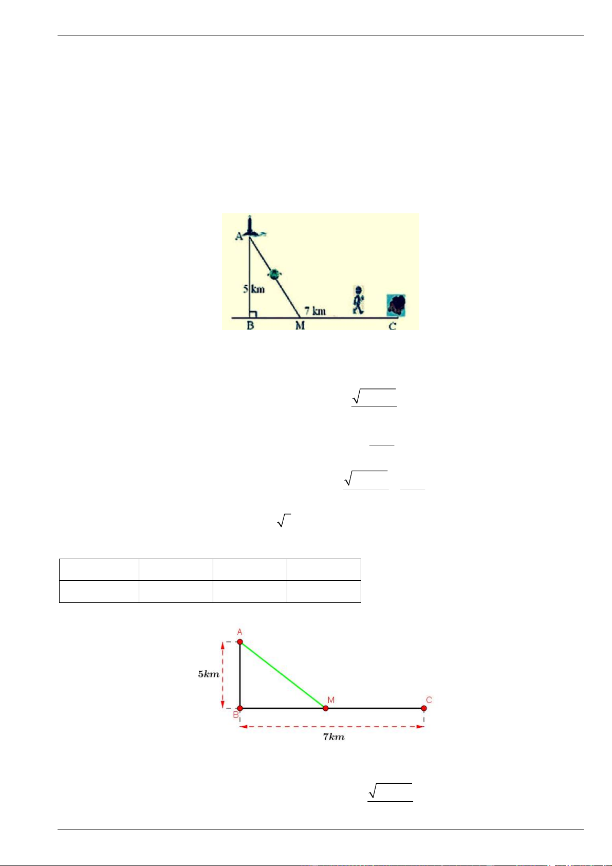 Câu 3. Một ngọn hải đăng đặt tại vị trí A có khoảng cách đến bờ biển AB 5km . Trên bờ biển có một