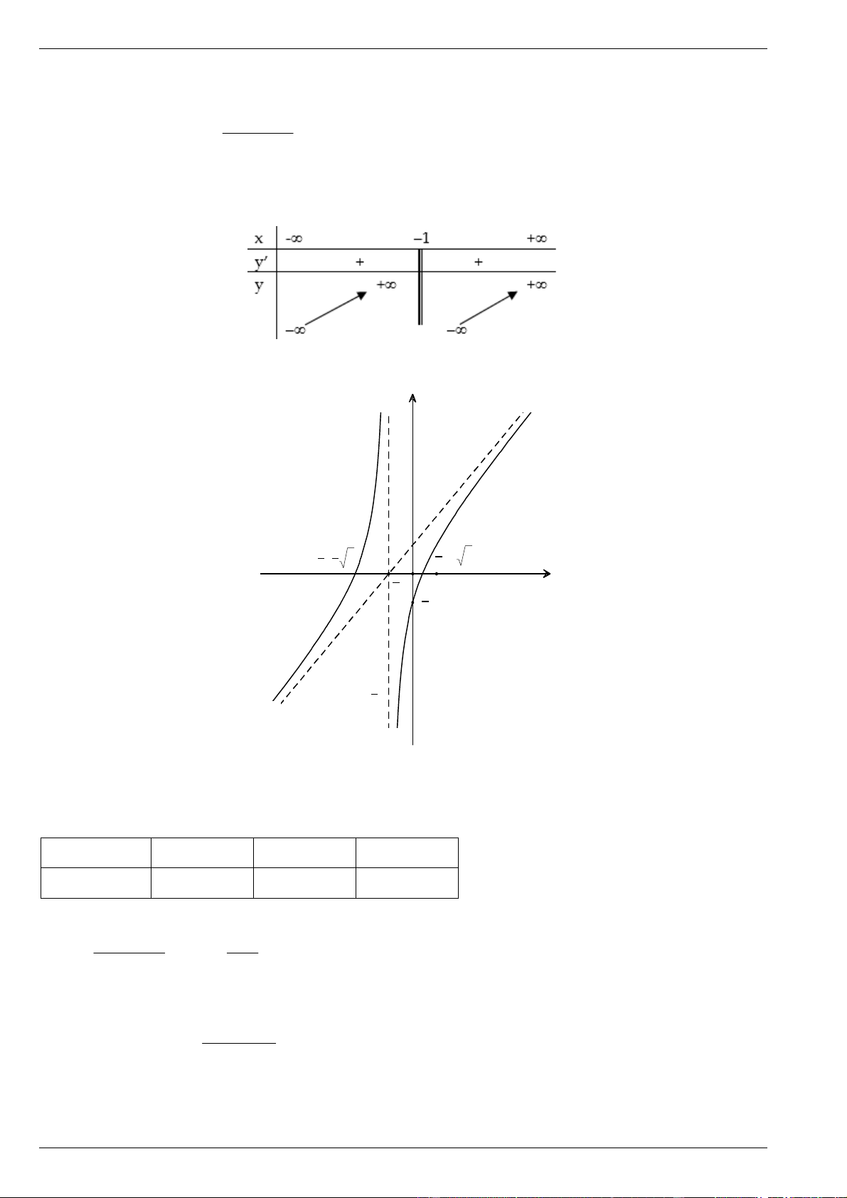 lim y (x 1) lim y (x 1) 0 y x 1 là tiệm cận xiên. x x Bảng biến thiên: