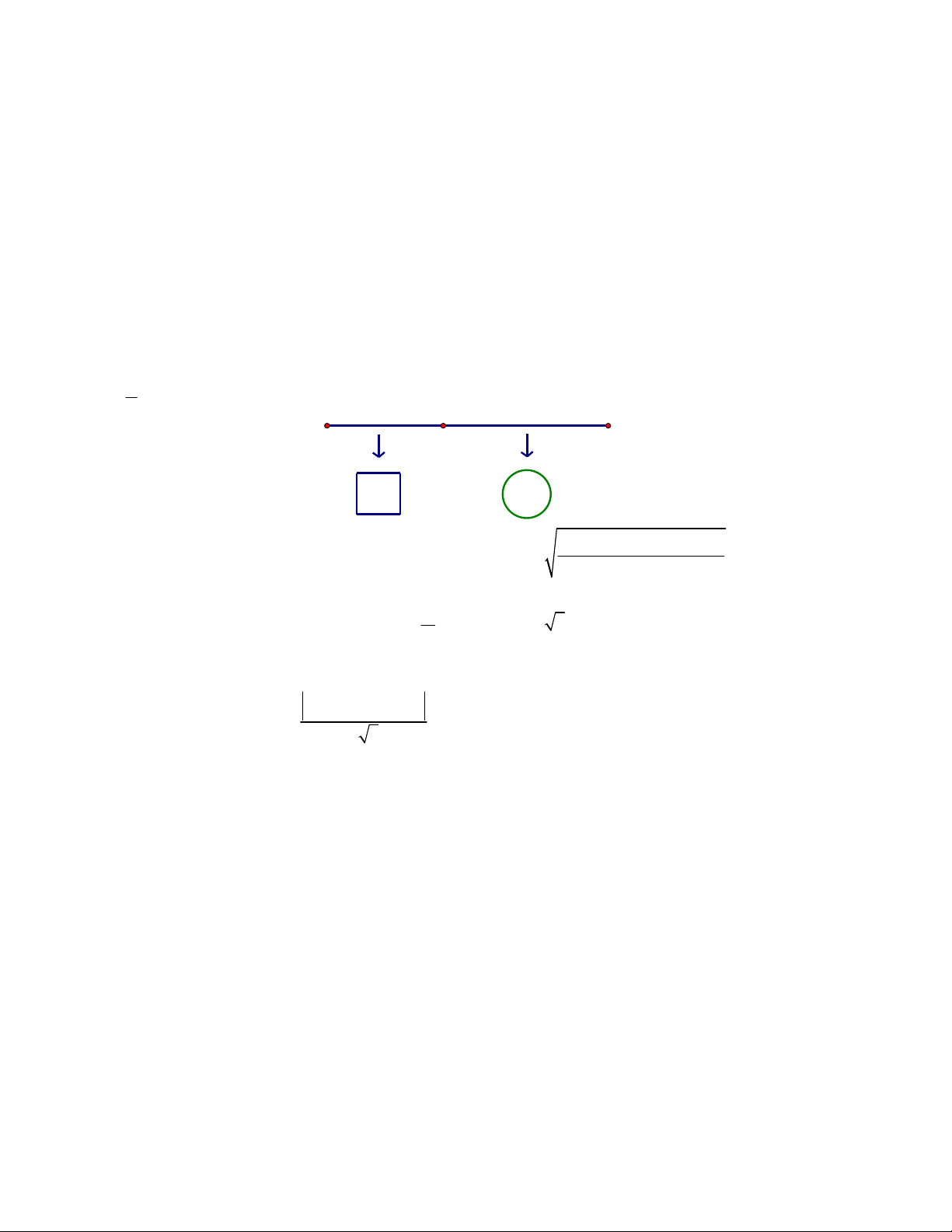 a , đoạn dây thứ hai uốn thành đường tròn bán kính r . Để tổng diện tích của hình vuông và hình tròn nhỏ nhất a thì tỉ số bằng bao nhiêu? r 2 x x 1