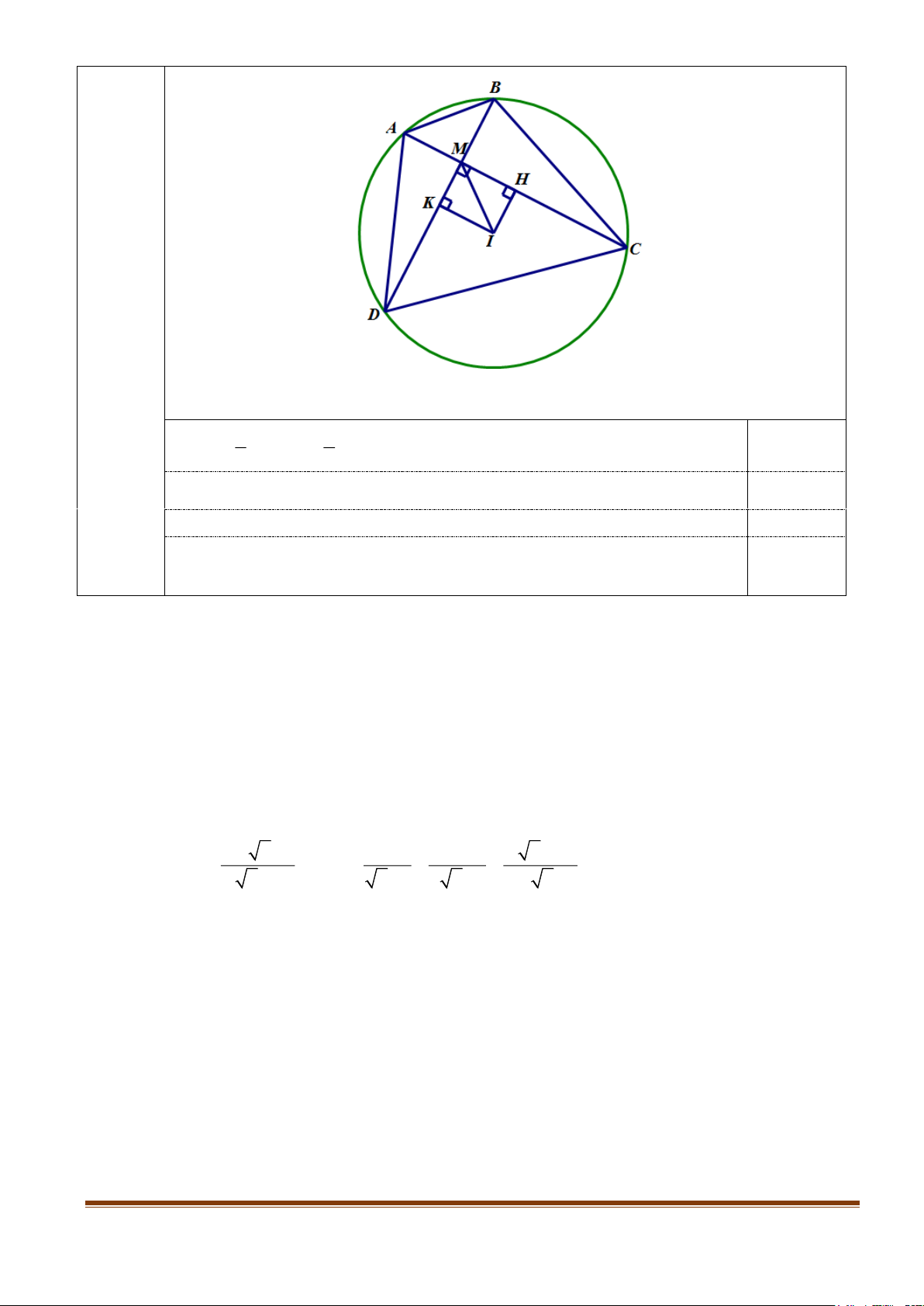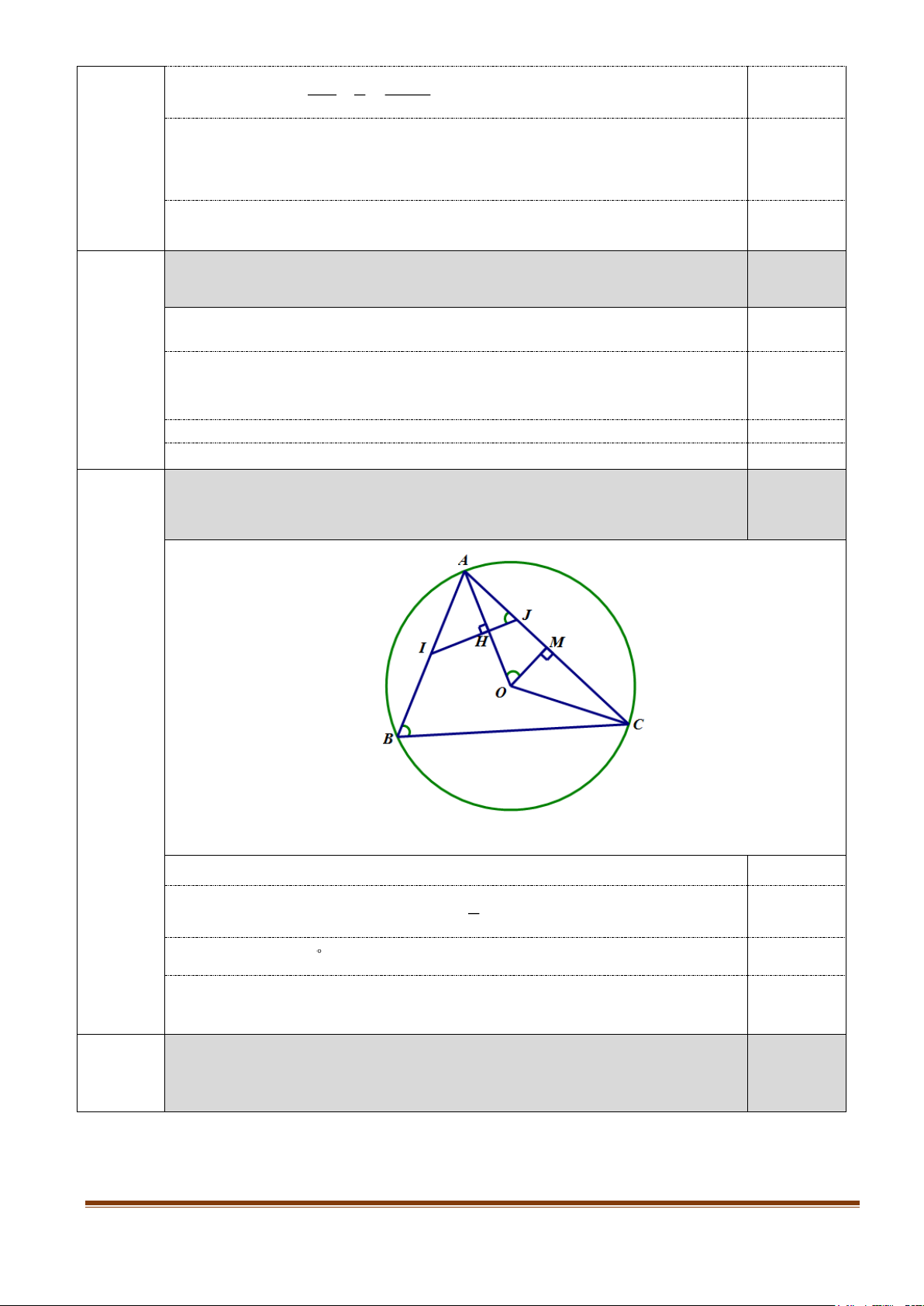 Đường thẳng qua I vuông góc AO và cắt AC tại J . Chứng minh: B,C, J và I cùng thuộc một đường tròn. Câu 10: (1,0 điểm)