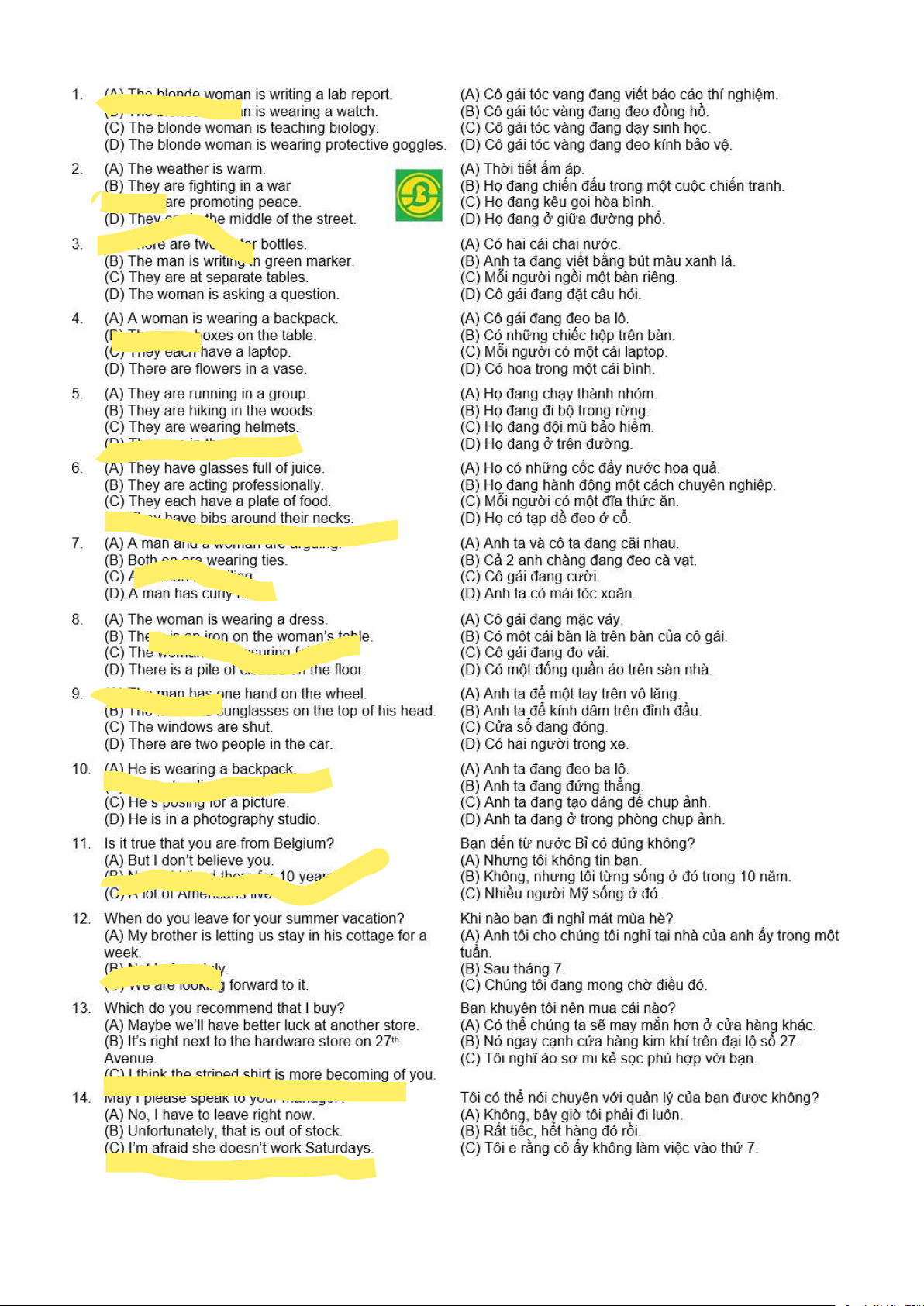 10 ĐỀ TOEIC LISTENING PART 01 & 02