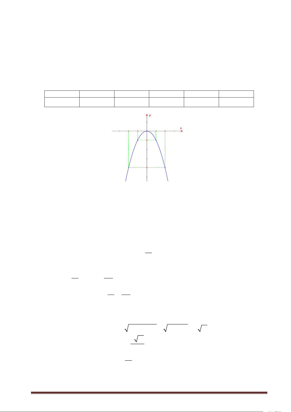 Vậy pt đã cho có hai nghiệm: x = 1 − , x = 3 Bài 2 (1.5 điểm). a) vẽ Parabol (P): 2 y = 2 − x Bảng giá trị: x −2 −1 0 1 2 2 y = 2 − x −8 −2 0 −2 −8 1 -2 -1 O 2 1 -2 -8