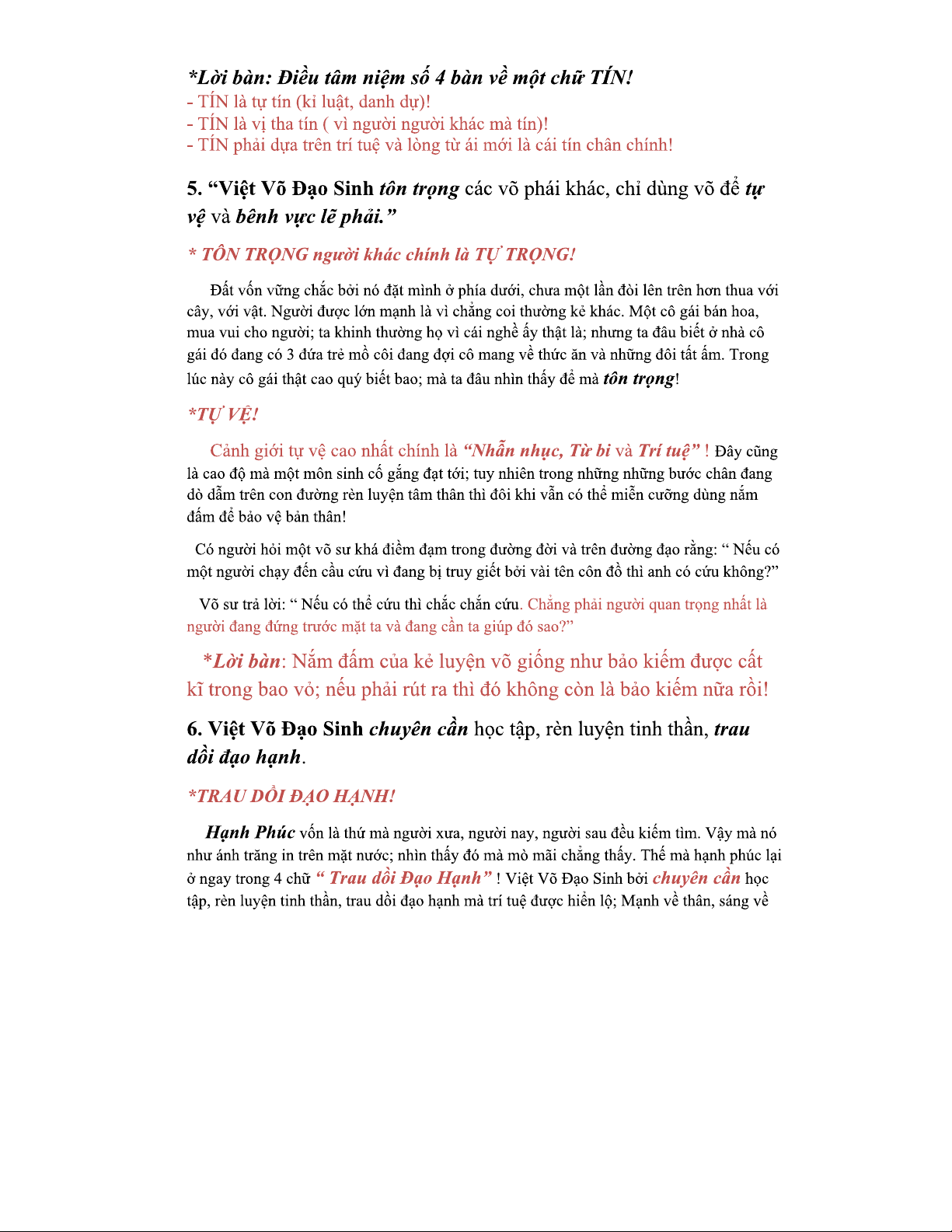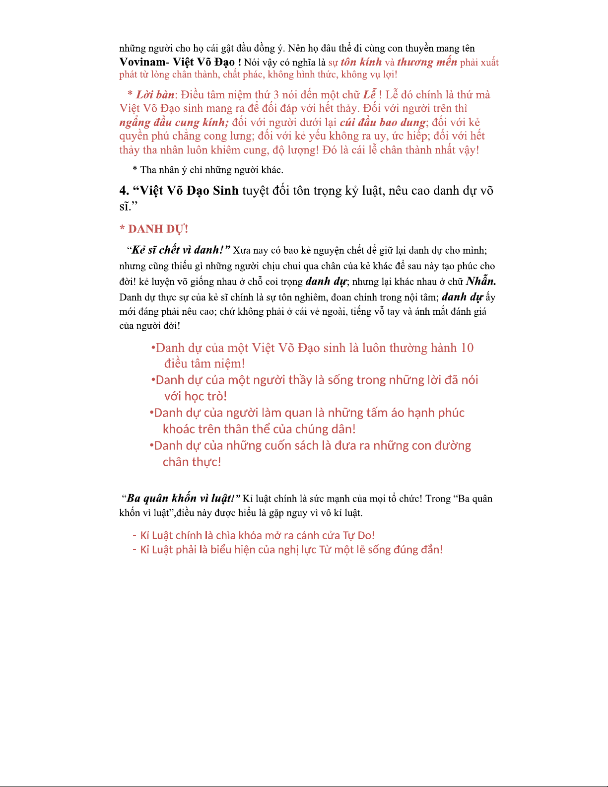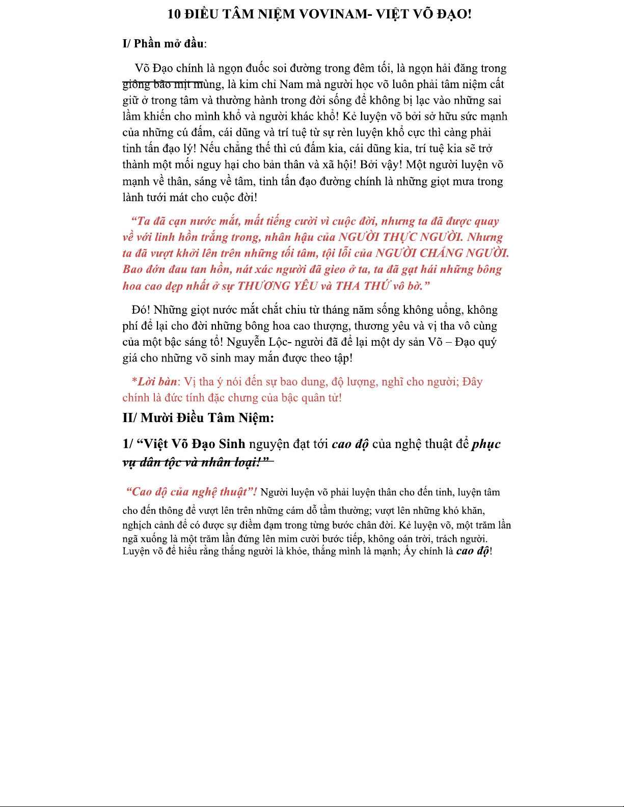 10 Điều Tâm Niệm Trong Vovinam - Khám Phá Việt Võ Đạo