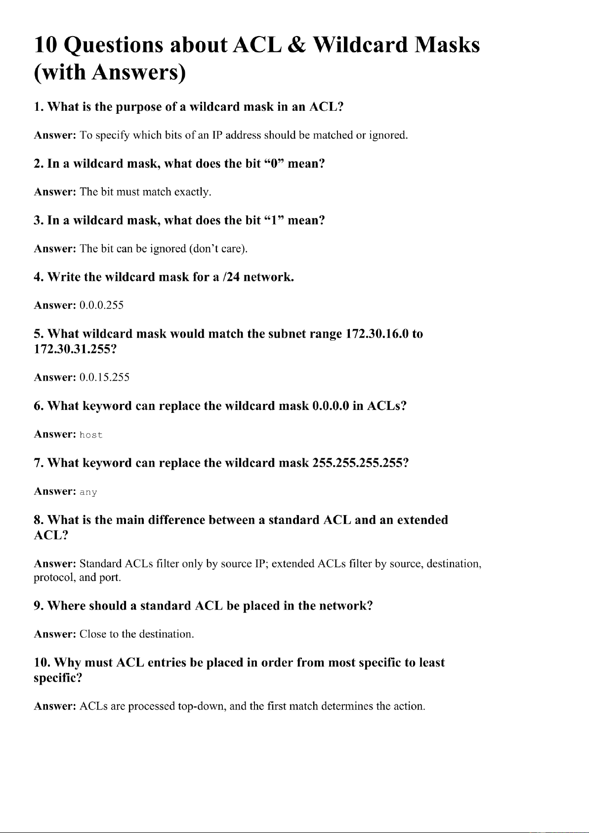 10 Questions about ACL & Wildcard Masks môn Bảo mật | Trường Đại học Kinh Doanh và Công Nghệ Hà Nội