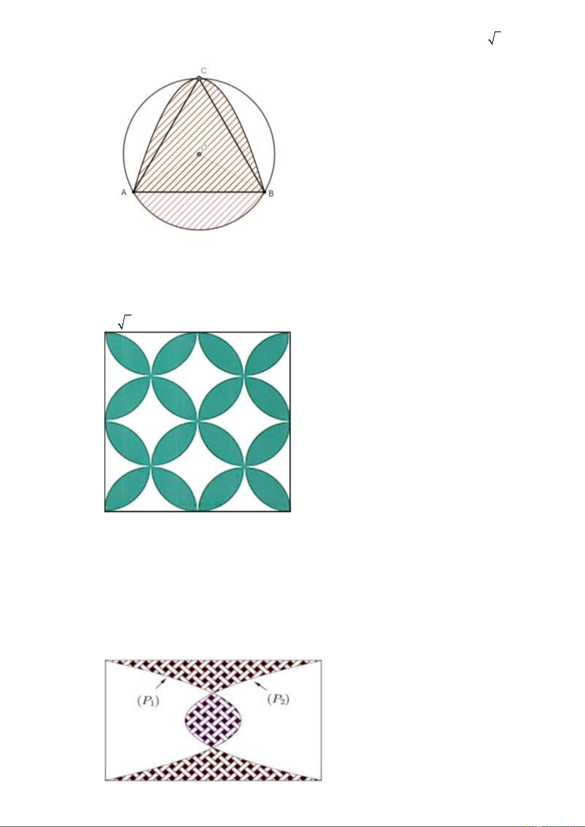 Câu 42. Một hoa văn hình tròn tâm O, ngoại tiếp tam giác đều ABC có cạnh AB = 2 3 c . m Đường cong qua ba điểm ,