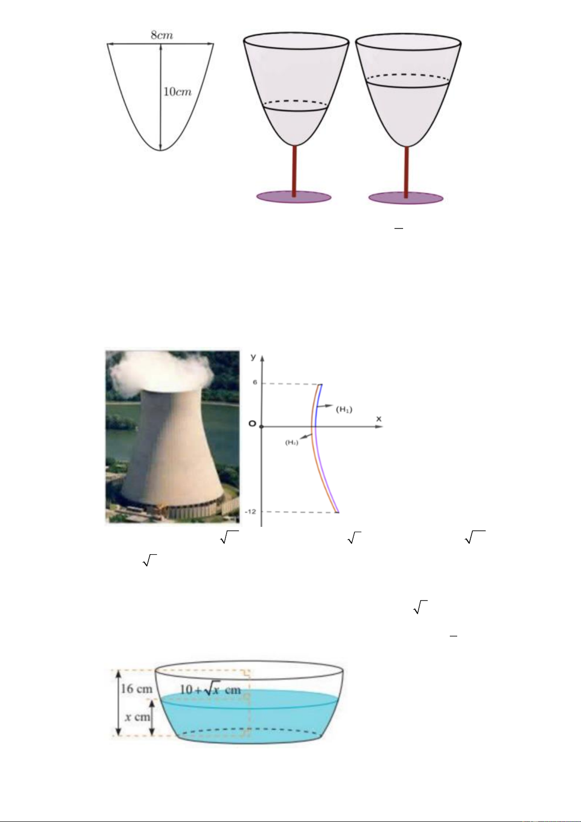 Câu 48. Một ly thủy tinh có hình dạng phần chứa nước là một hình parabol tròn xoay. Hình dạng này