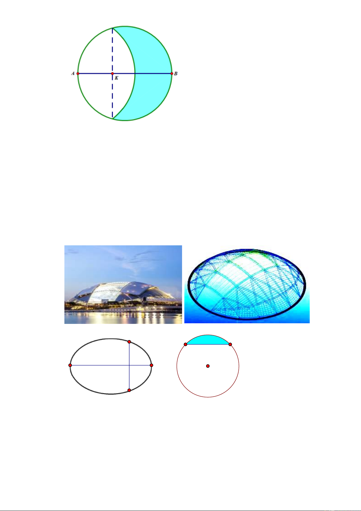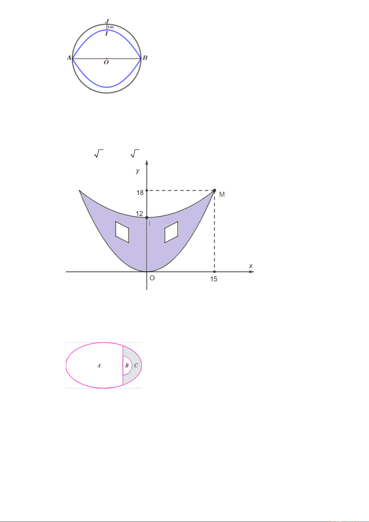 trong hình tròn, đi qua các điểm A B, và có đỉnh cách mép hình tròn 1m. Phần giới hạn bởi 2