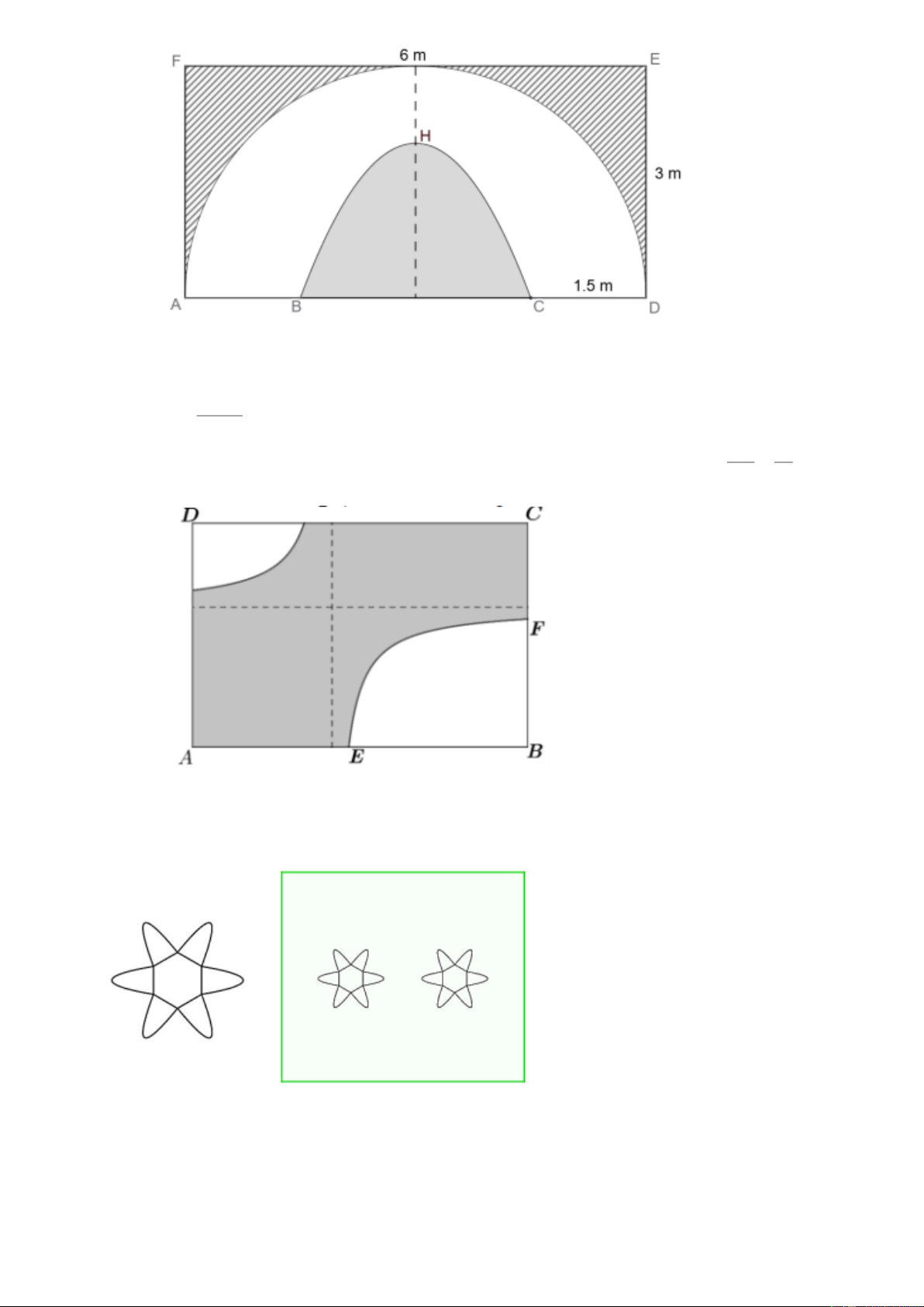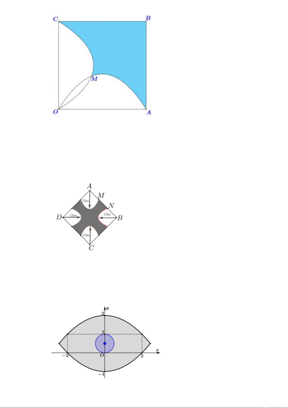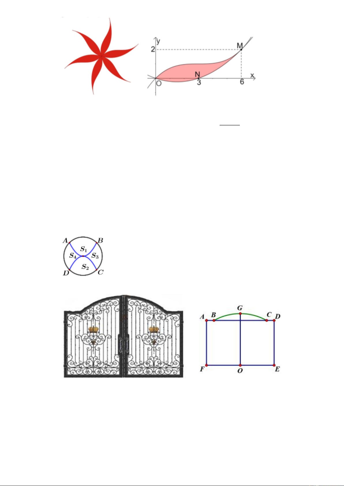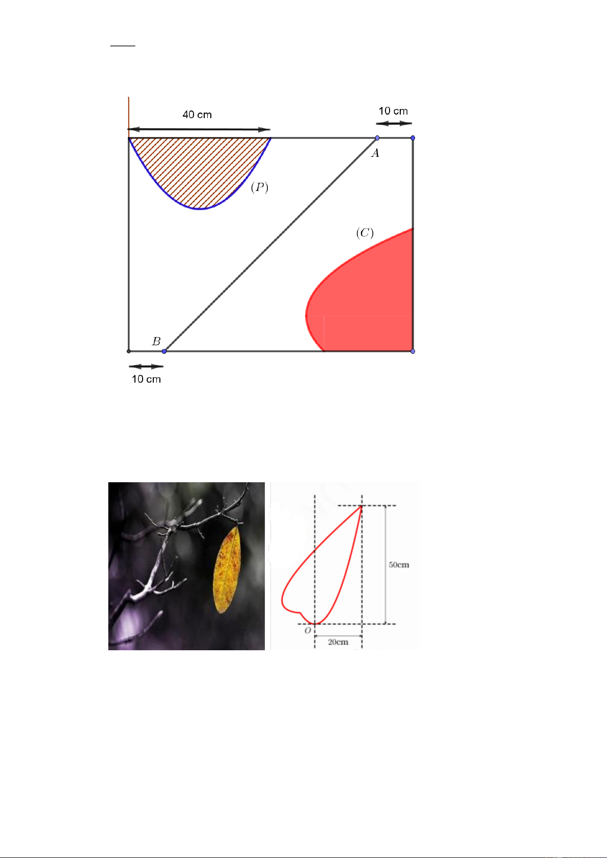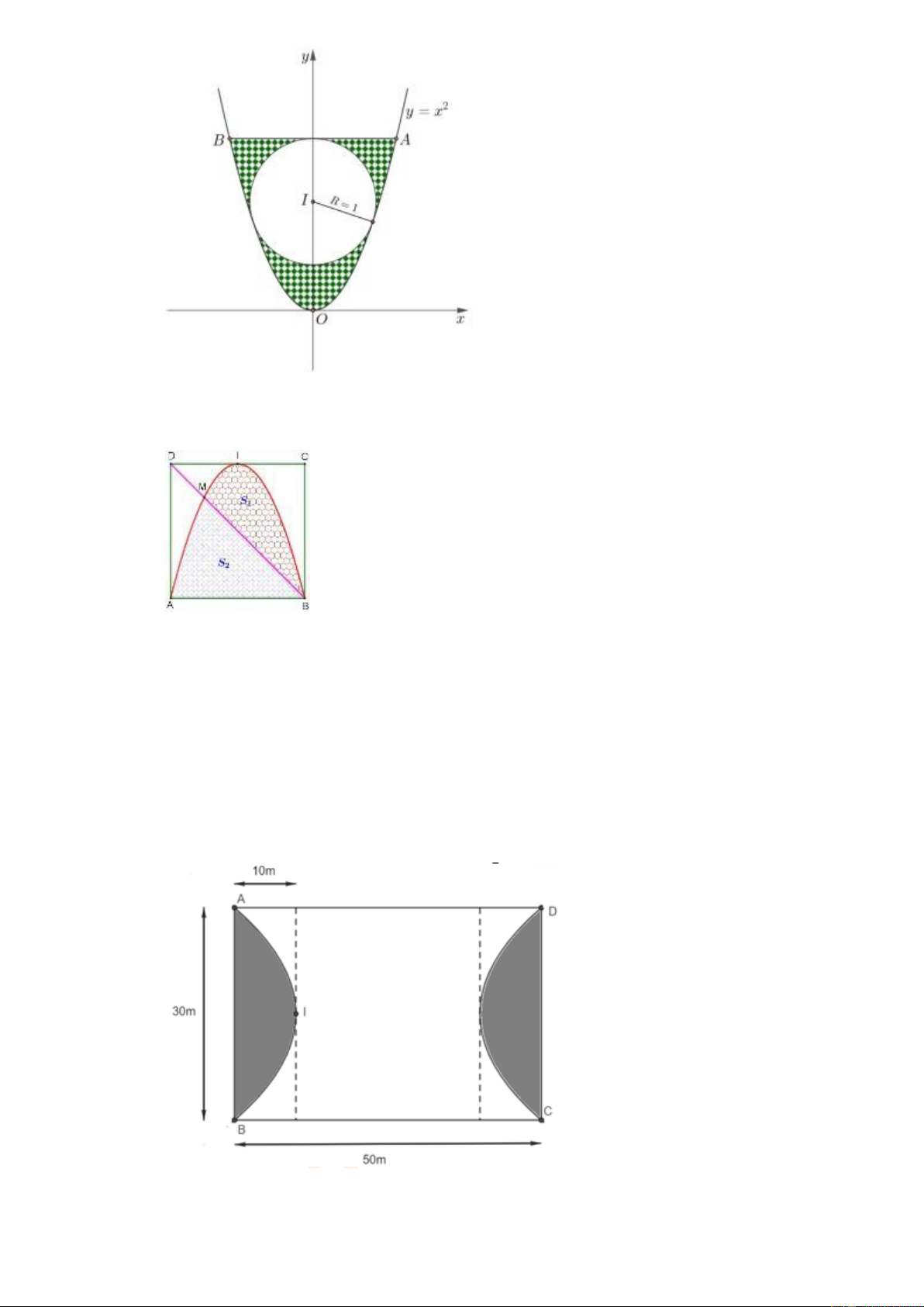 các điểm O,C,M . Tính diện tích phần tô đậm (hình vẽ bên). (kết quả làm tròn kết quả đến hàng đơn vị). Trang 14