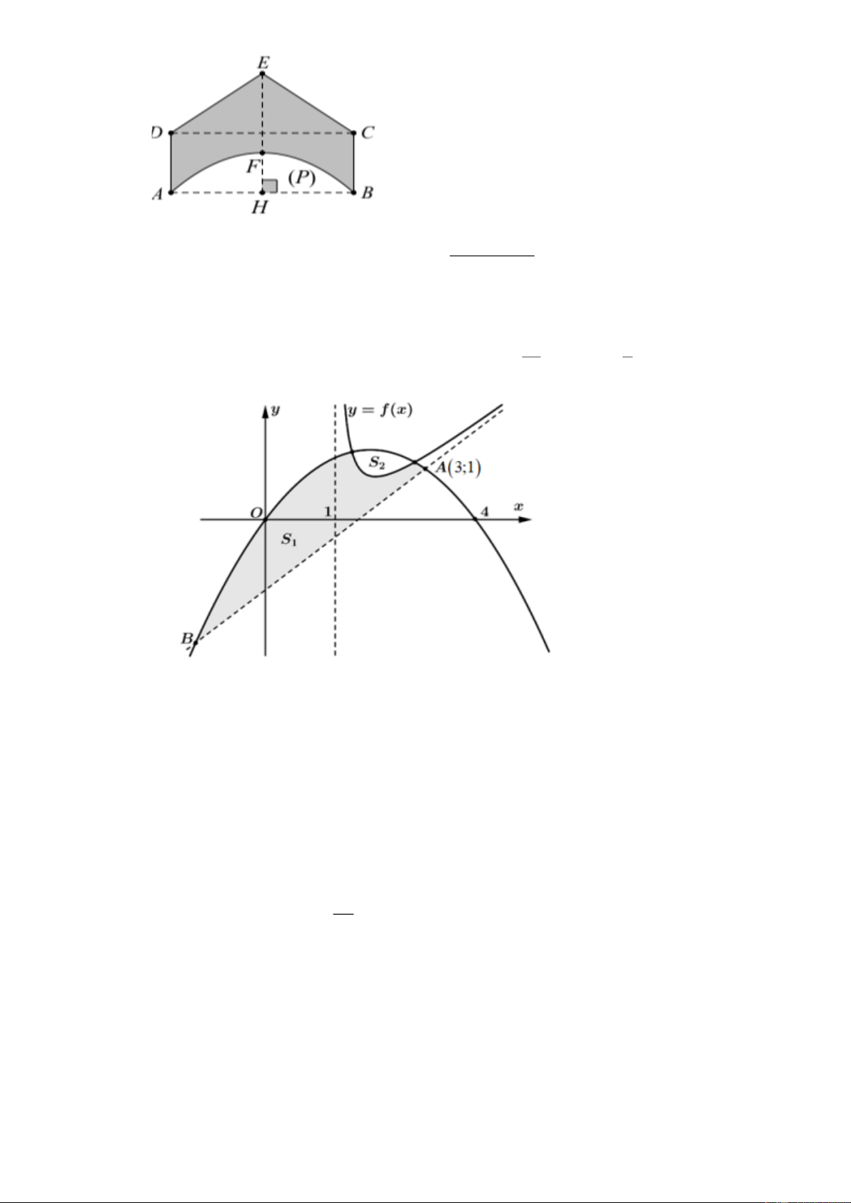 Tính diện tích phần tô đậm (làm tròn đến hai chữ số thập phân). Câu 14. Cho parabol ( P ) 2 :