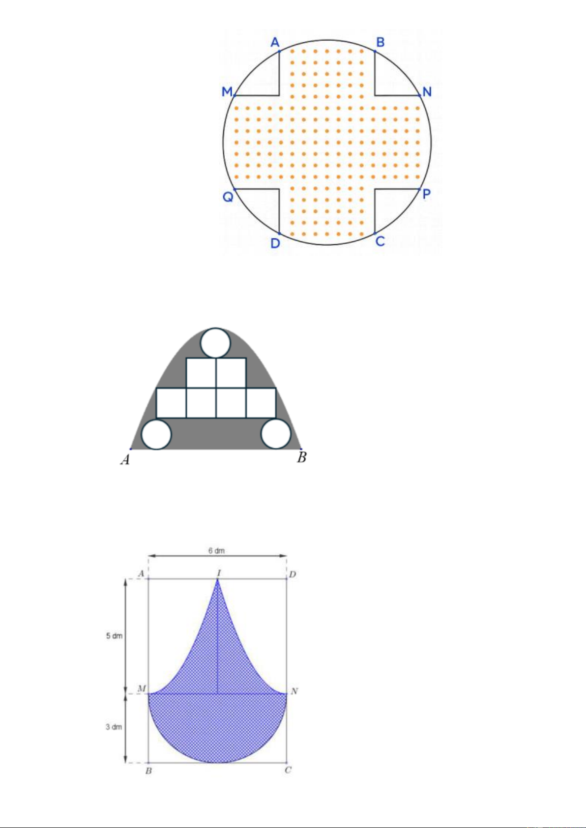Câu 45. Khuôn viên nhà bạn Thùy Dương có dạng nửa hình tròn, trên đó người thiết kế phần để trồng