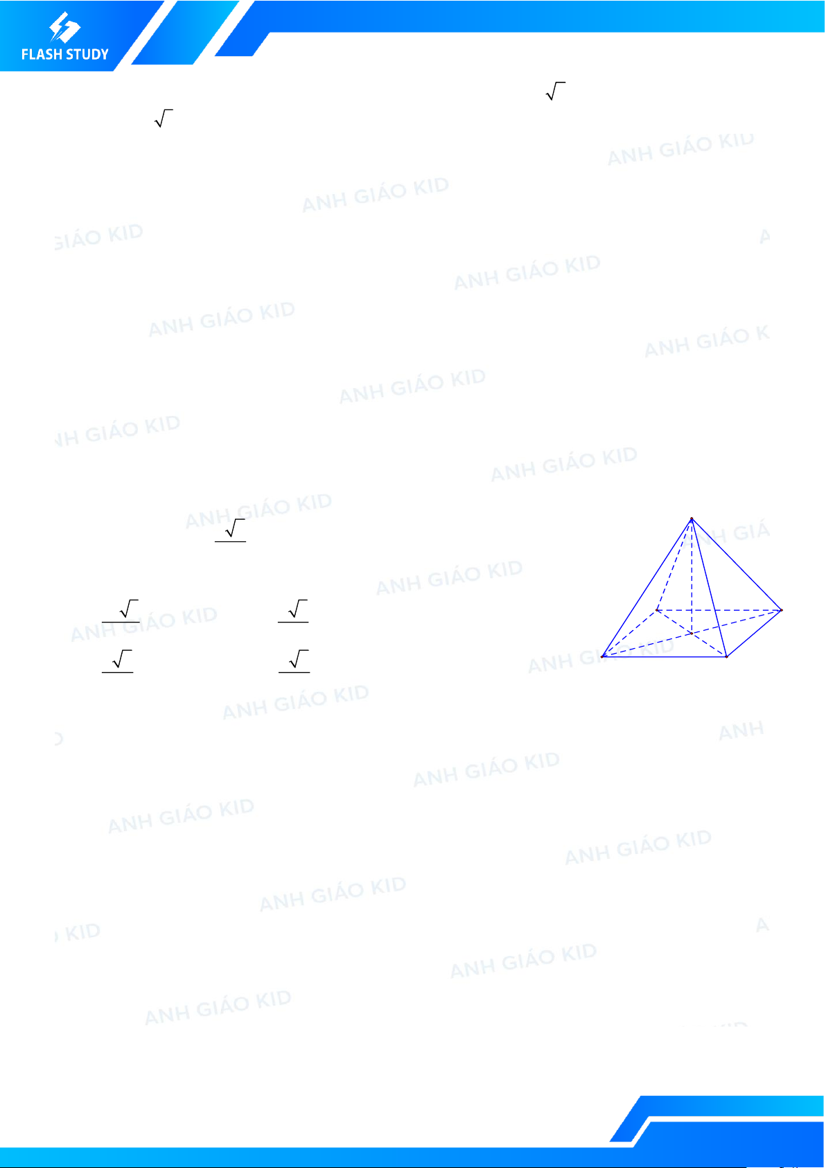 Câu 76. [KID] Cho khối chóp S.ABCD có đáy là hình vuông cạnh a , SA vuông góc với đáy và SA = a .