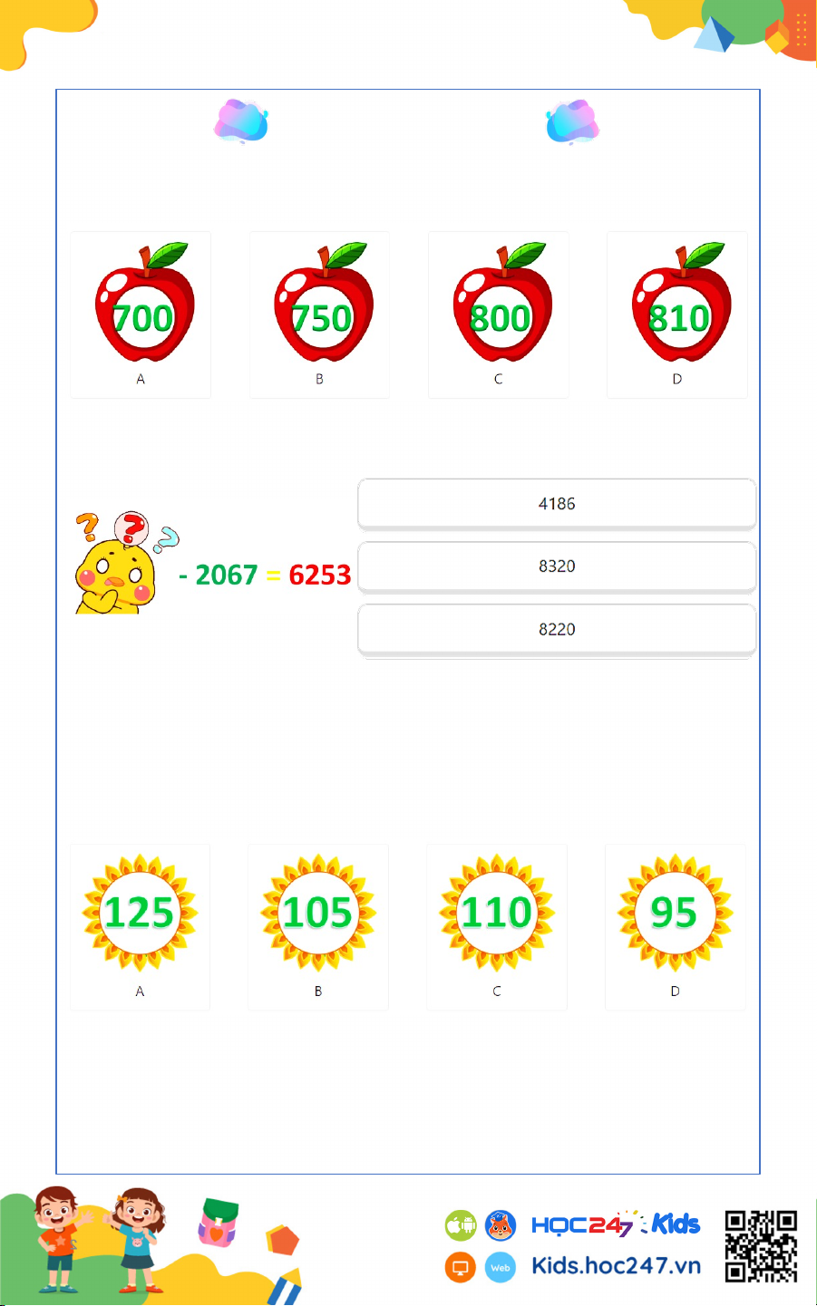 Câu 2. Tìm một số, biết rằng khi lấy số đó trừ đi 2067 thì được 6253. A B C